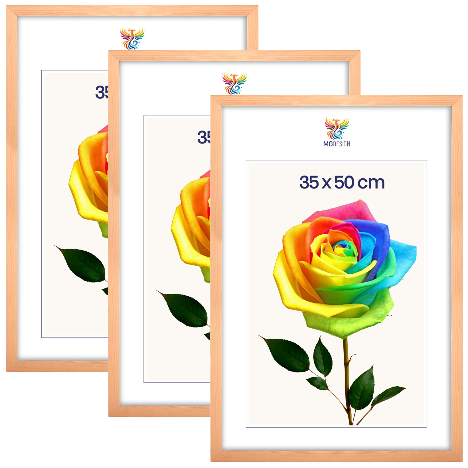 Set of 3 Natural photo frames 14 x 20 in (35 x 50 cm), made of wood