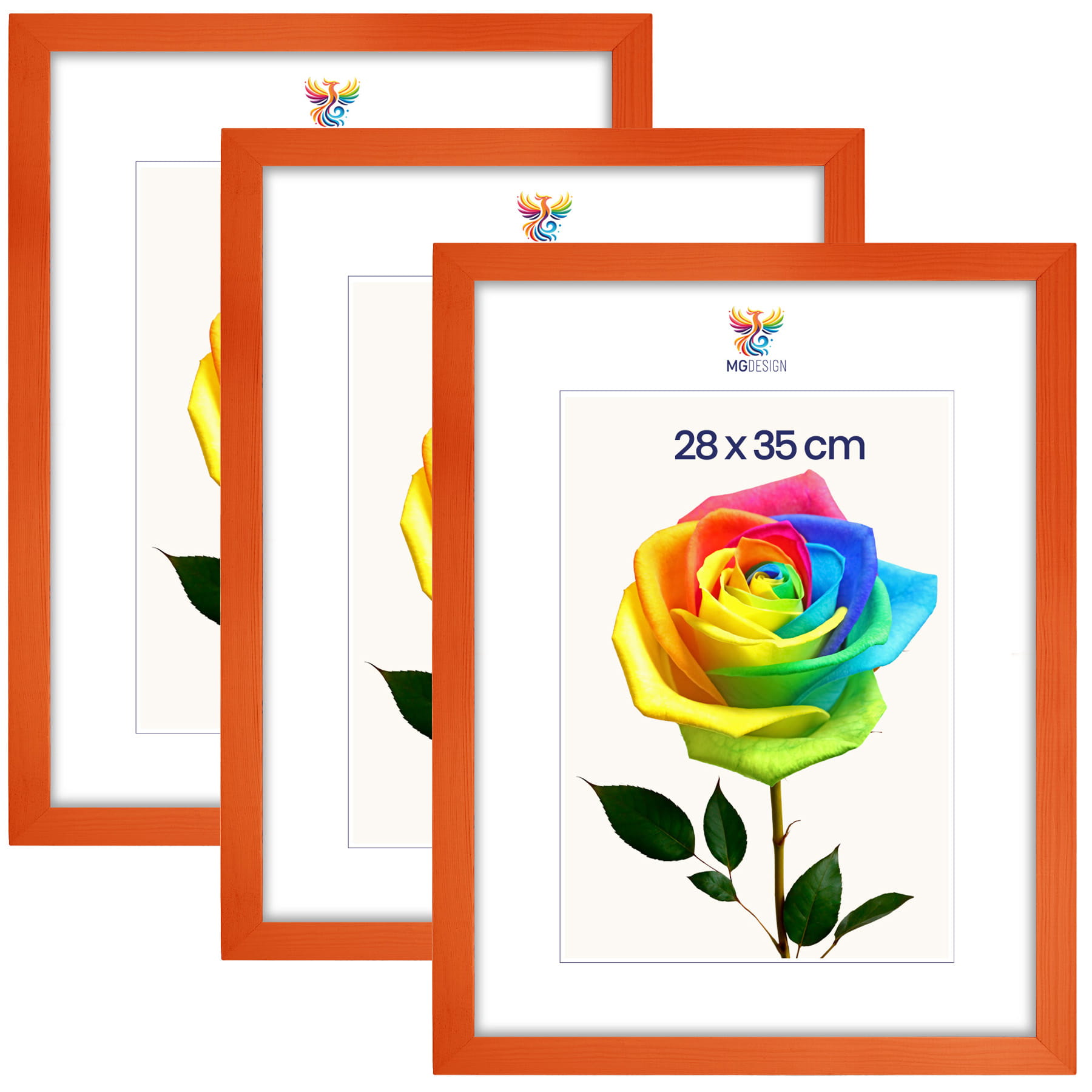 Set of 3 Orange photo frames 11 x 14 in (28 x 35 cm), made of natural wood