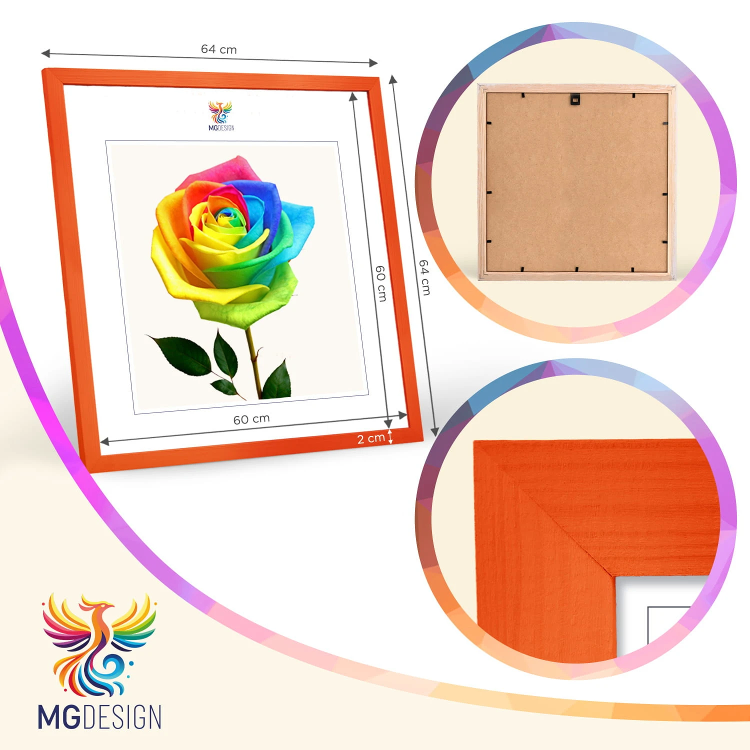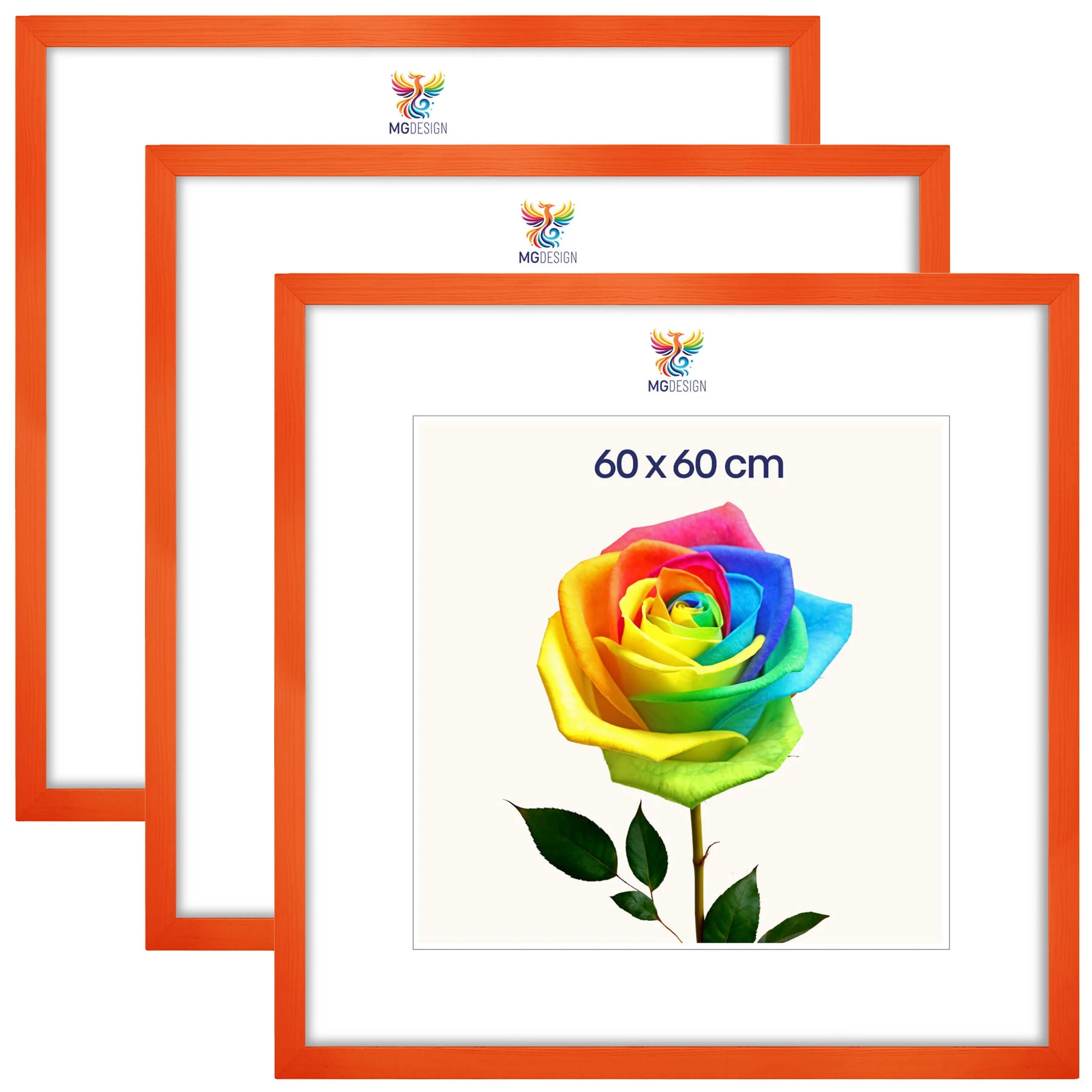 Set of 3 Orange photo frames 24 x 24 in (60 x 60 cm), made of natural wood