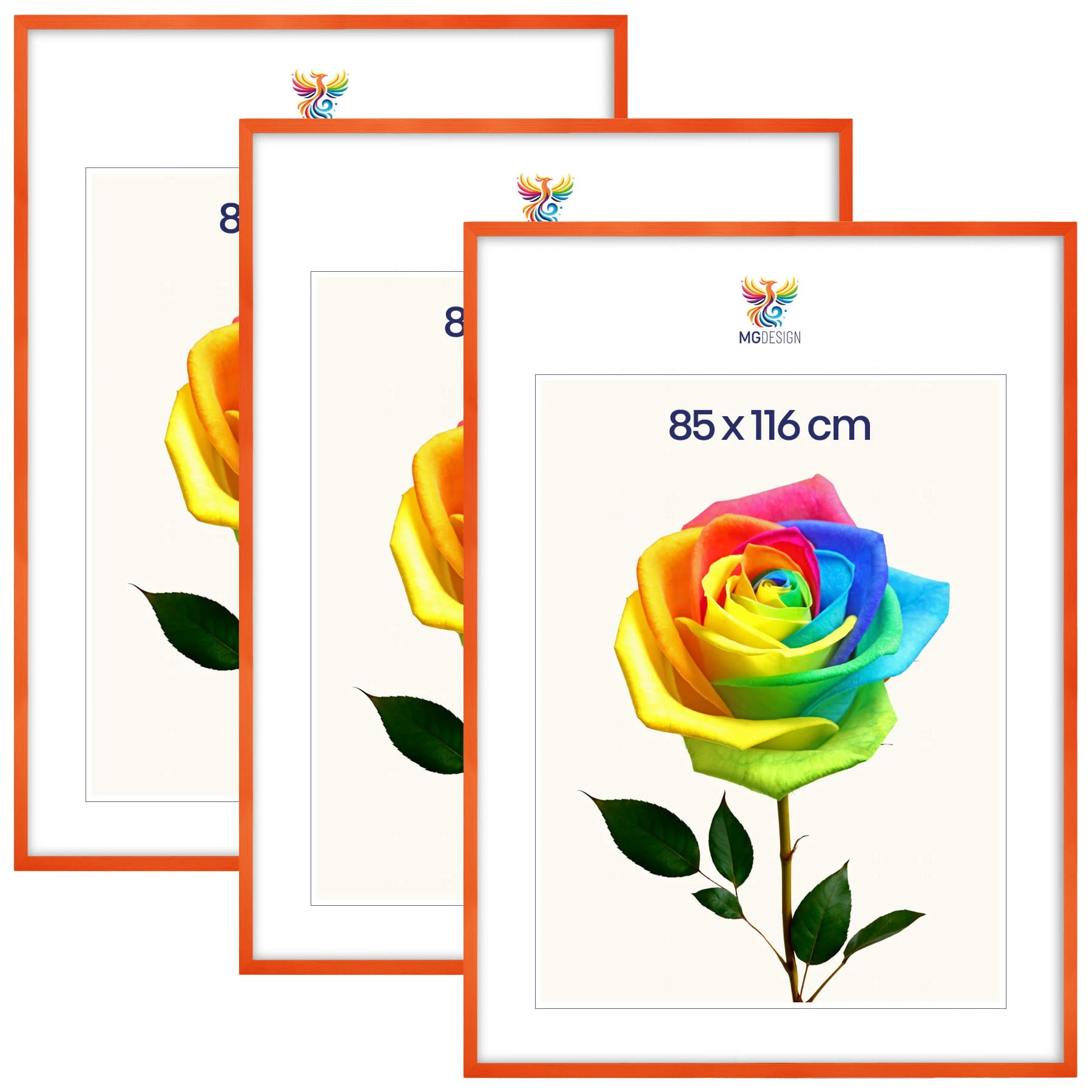 Set of 3 Orange photo frames 34 x 46 in (85 x 116 cm), made of natural wood