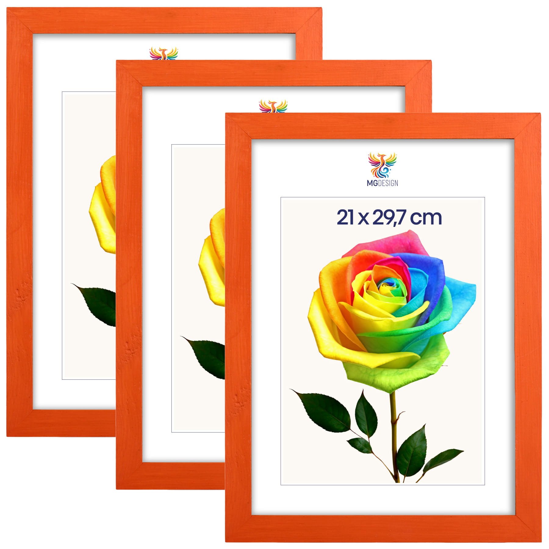 Set of 3 Orange photo frames A4 8 x 12 in (21 x 29,7 cm), made of natural wood