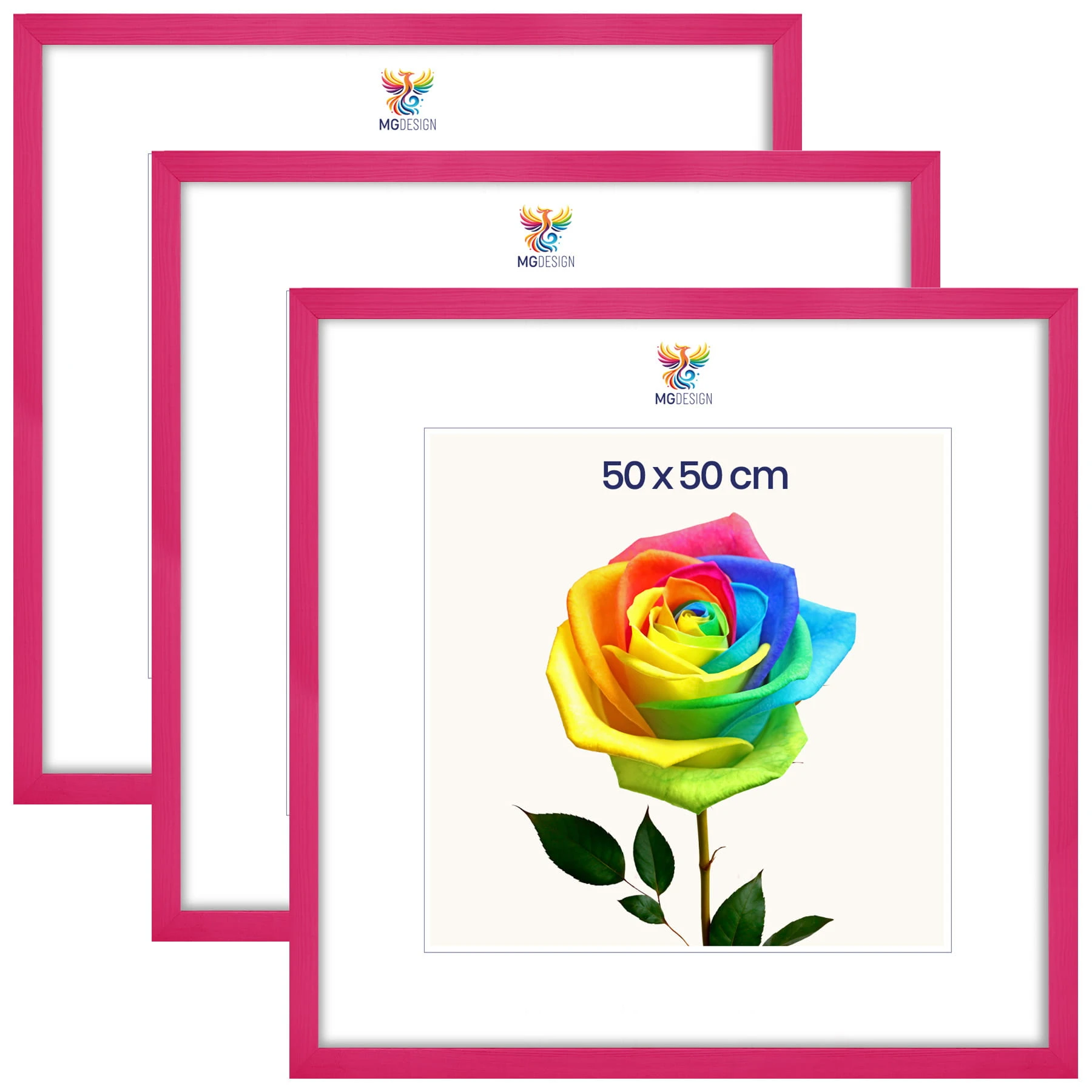 Set of 3 Pink photo frames 20 x 20 in (50 x 50 cm), made of natural wood