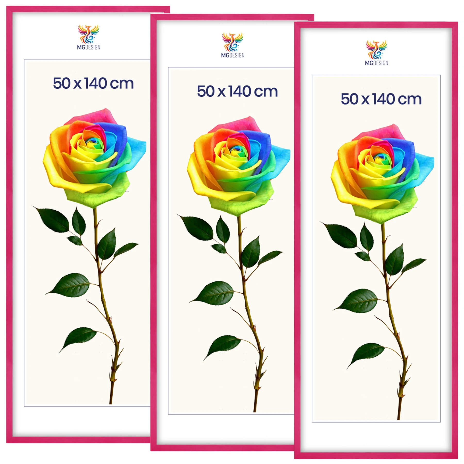 Set of 3 Pink photo frames 20 x 55 in (50 x 140 cm), made of natural wood