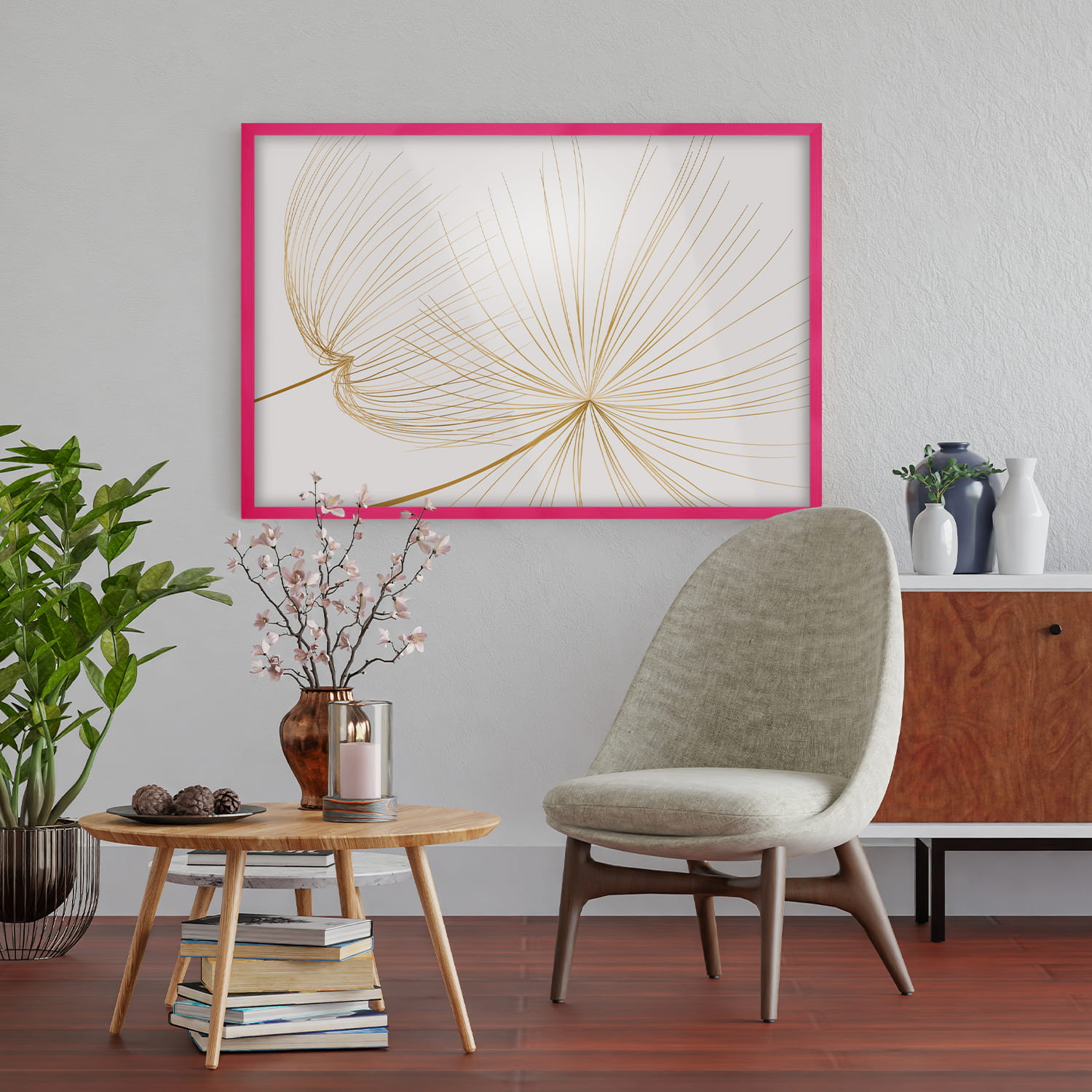 The frames are made of natural wood, carefully processed to preserve the visible structure of the material, which gives the whole a natural and timeless character. The front of the frames is made of lightweight and damage-resistant plexiglass, which is a safer alternative to traditional glass and ensures good visibility of the framed works.