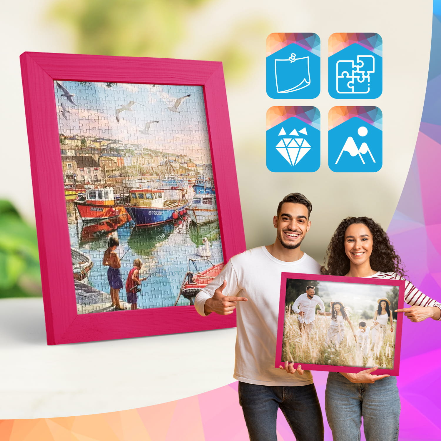 Set of 3 Pink photo frames A6 4 x 6 in (10 x 15 cm), made of natural wood