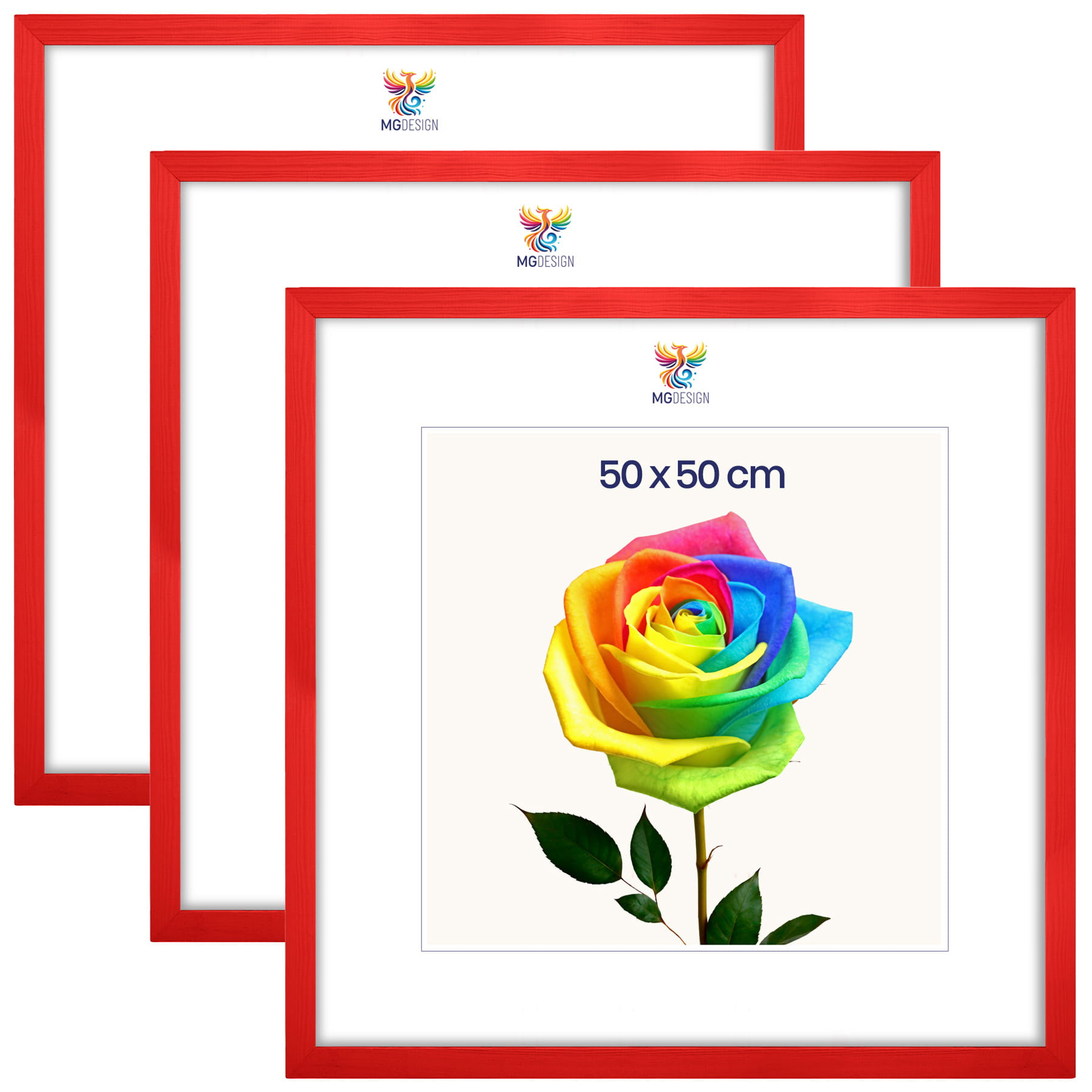 Set of 3 Red photo frames 20 x 20 in (50 x 50 cm), made of natural wood