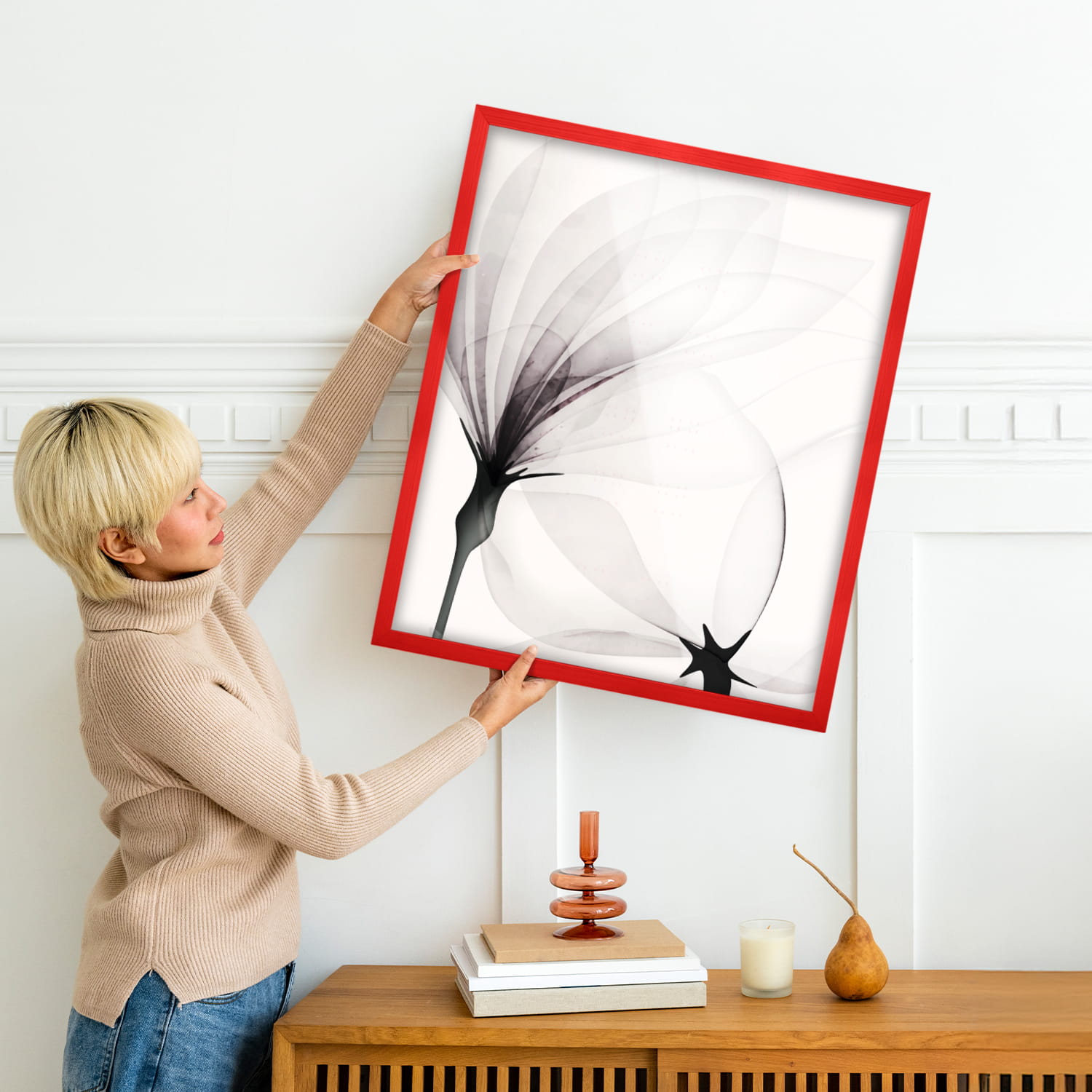 The frames can be displayed on furniture or hung on the wall. Integrated hangers allow the frames to be positioned vertically or horizontally, making it easy to match the set to your interior design.