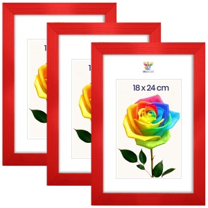 Set of 3 Red photo frames 7 x 9 in (18 x 24 cm), made of natural wood