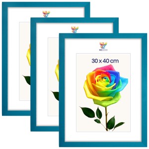 Set of 3 Turquoise photo frames 12 x 16 in (30 x 40 cm), made of natural wood