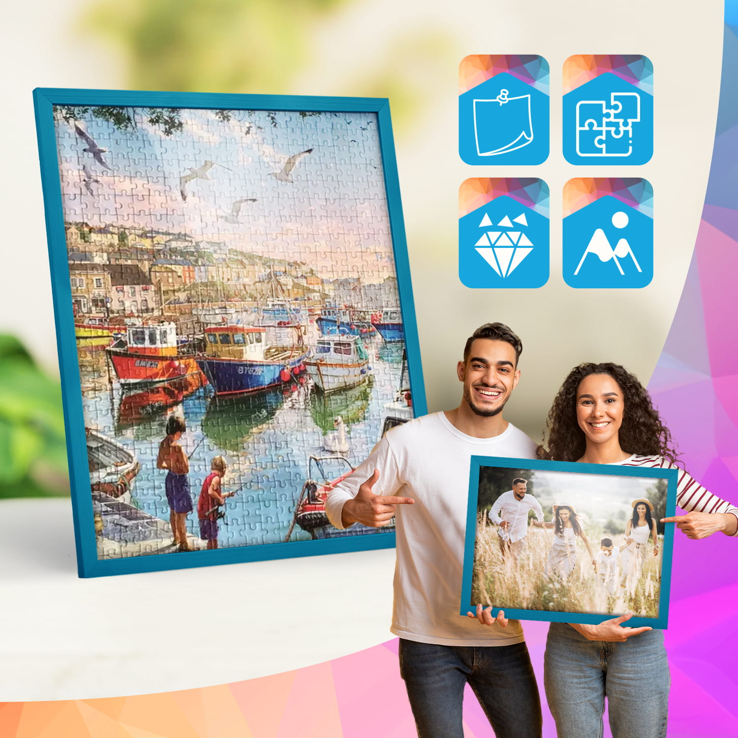 Set of 3 Turquoise photo frames 20 x 24 in (50 x 60 cm), made of natural wood