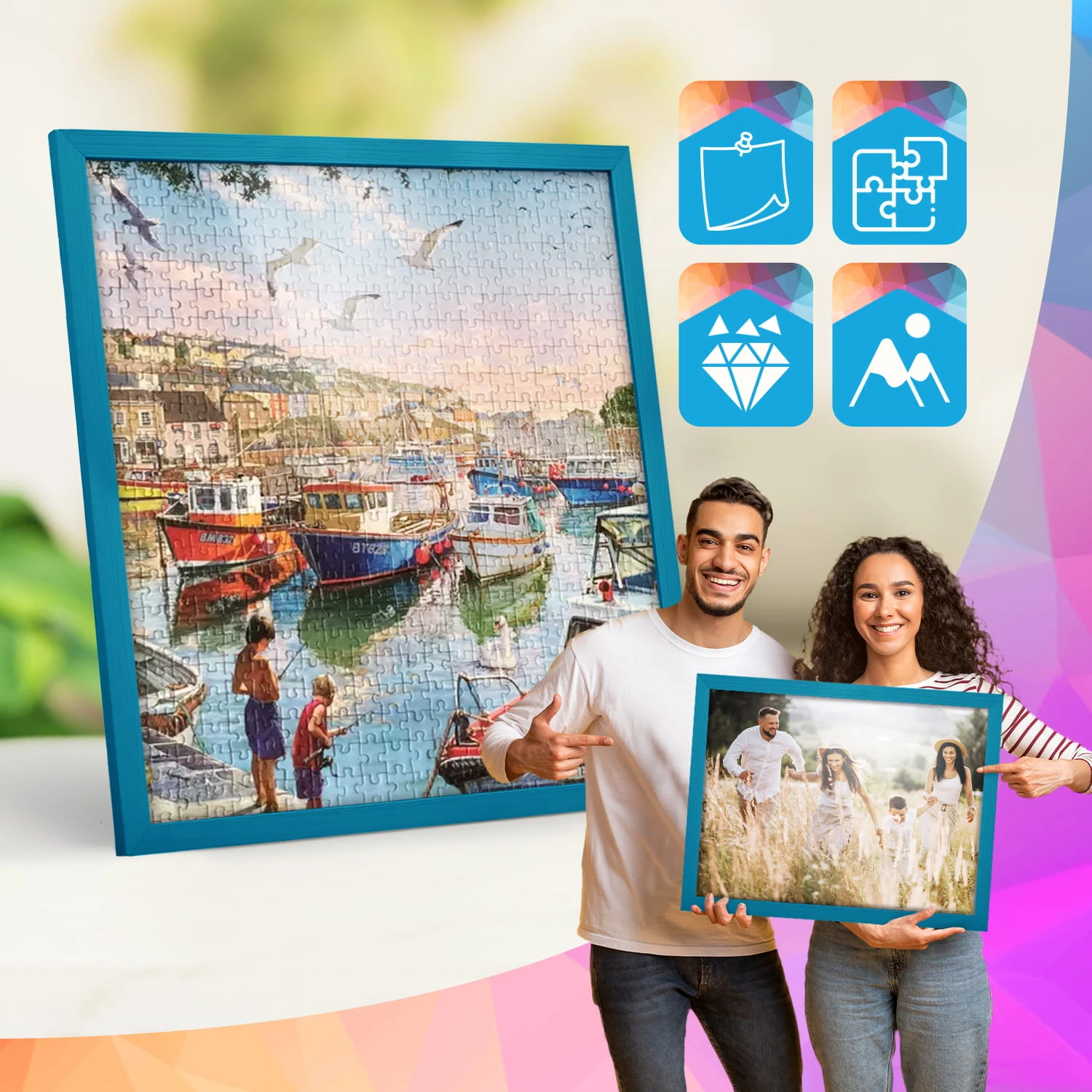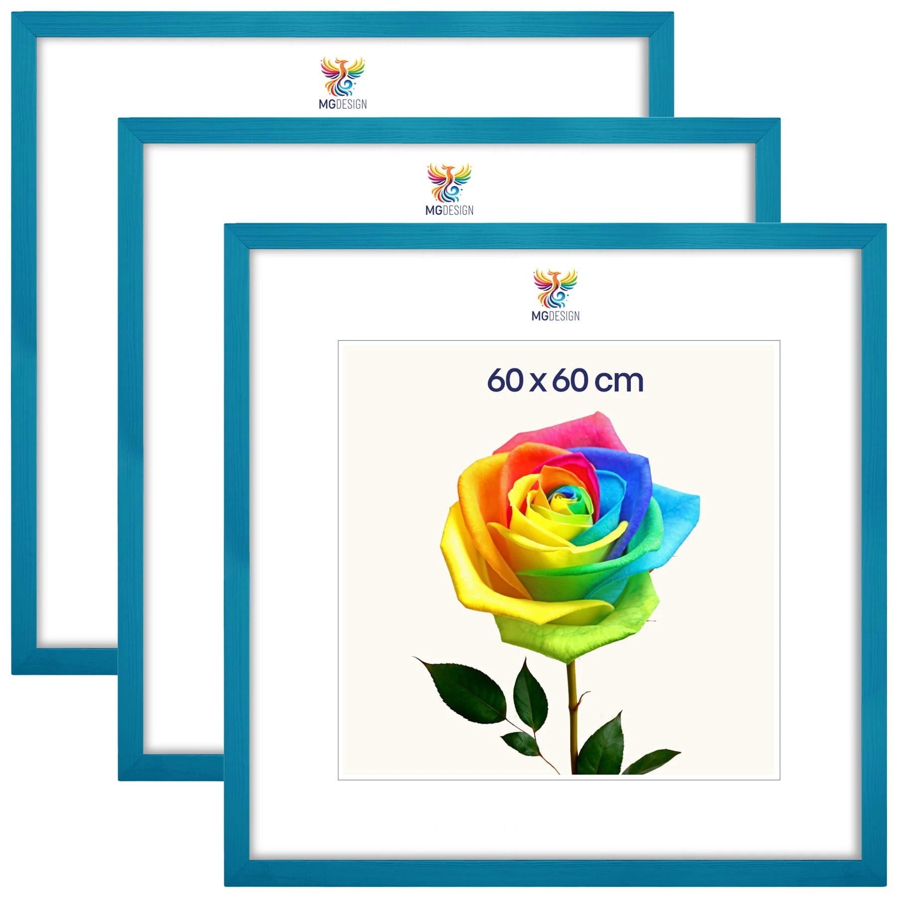 Set of 3 Turquoise photo frames 24 x 24 in (60 x 60 cm), made of natural wood