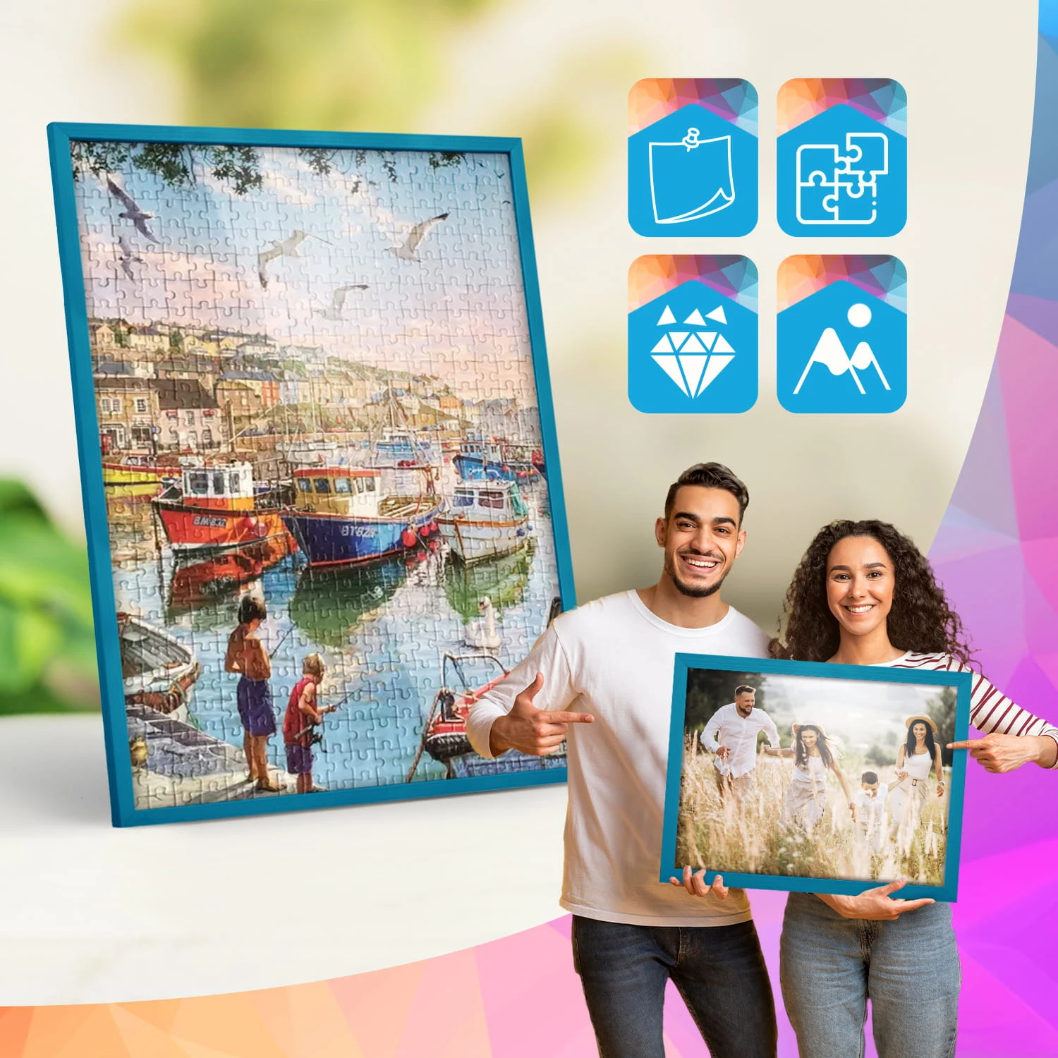Set of 3 Turquoise photo frames 28 x 40 in (70 x 100 cm), made of natural wood