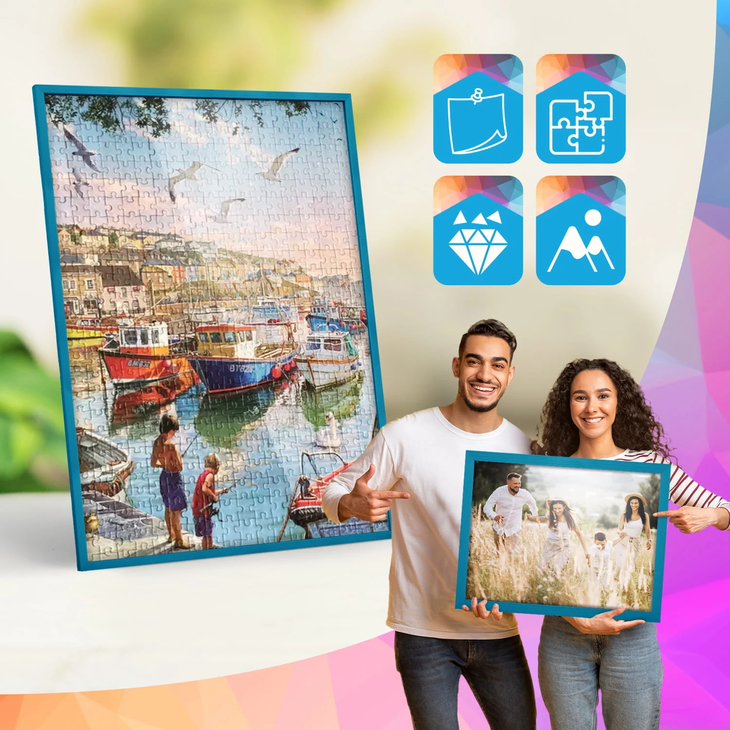 Set of 3 Turquoise photo frames 34 x 46 in (85 x 116 cm), made of natural wood