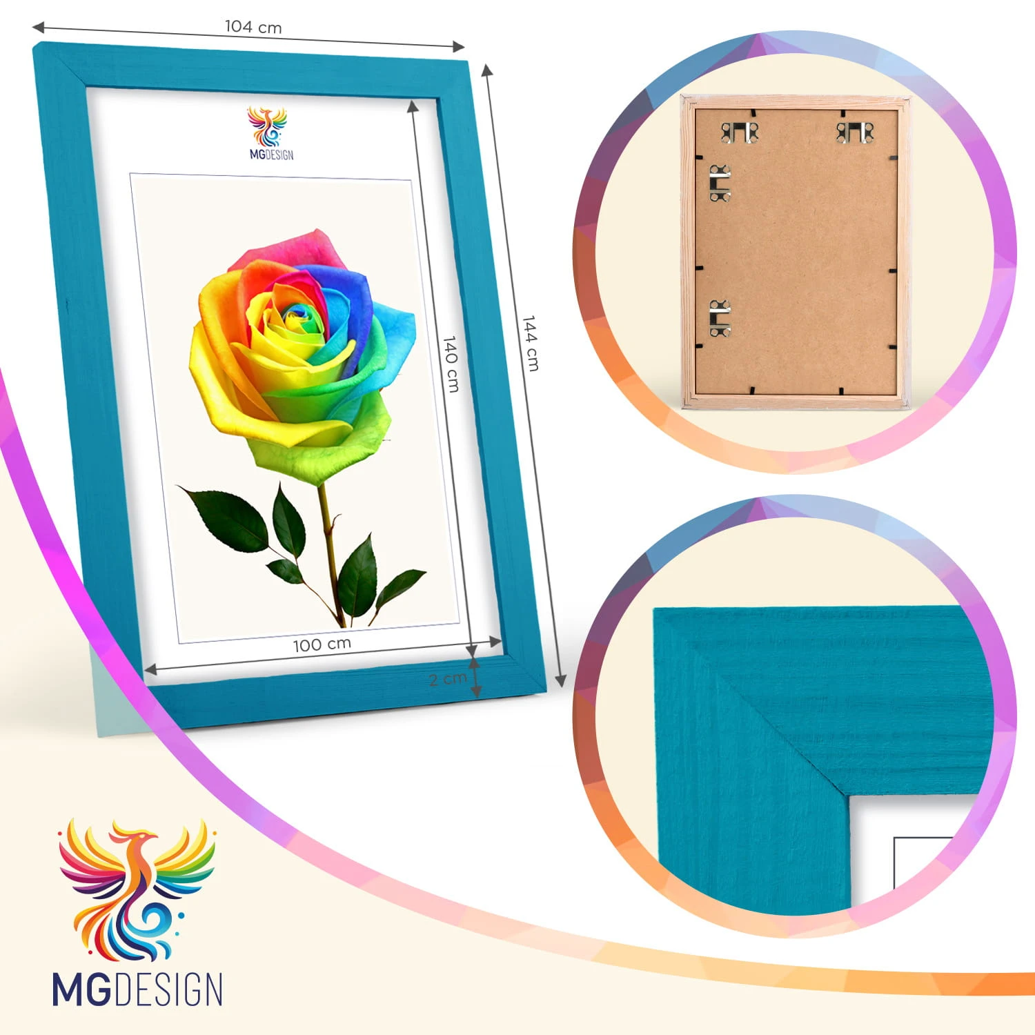 Set of 3 Turquoise photo frames 40 x 55 in (100 x 140 cm), made of natural wood