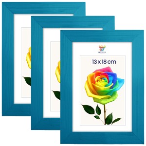 Set of 3 Turquoise photo frames 5 x 7 in (13 x 18 cm), made of natural wood