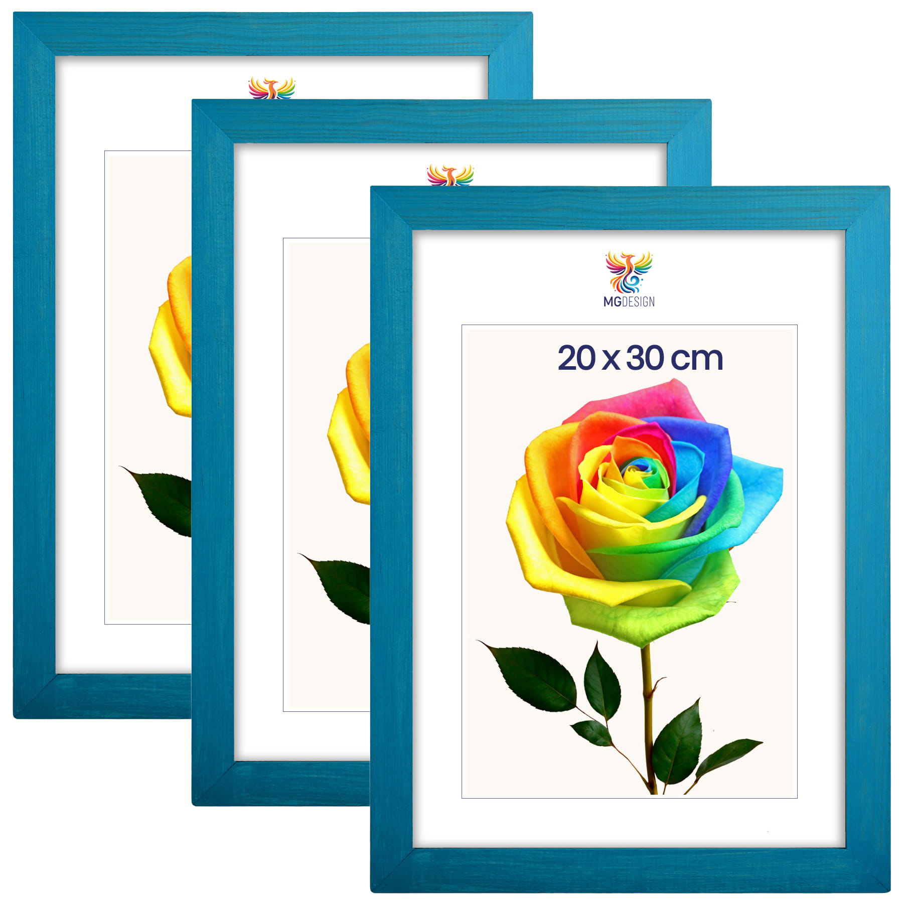 Set of 3 Turquoise photo frames 8 x 12 in (20 x 30 cm), made of natural wood