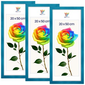 Set of 3 Turquoise photo frames 8 x 20 in (20 x 50 cm), made of natural wood