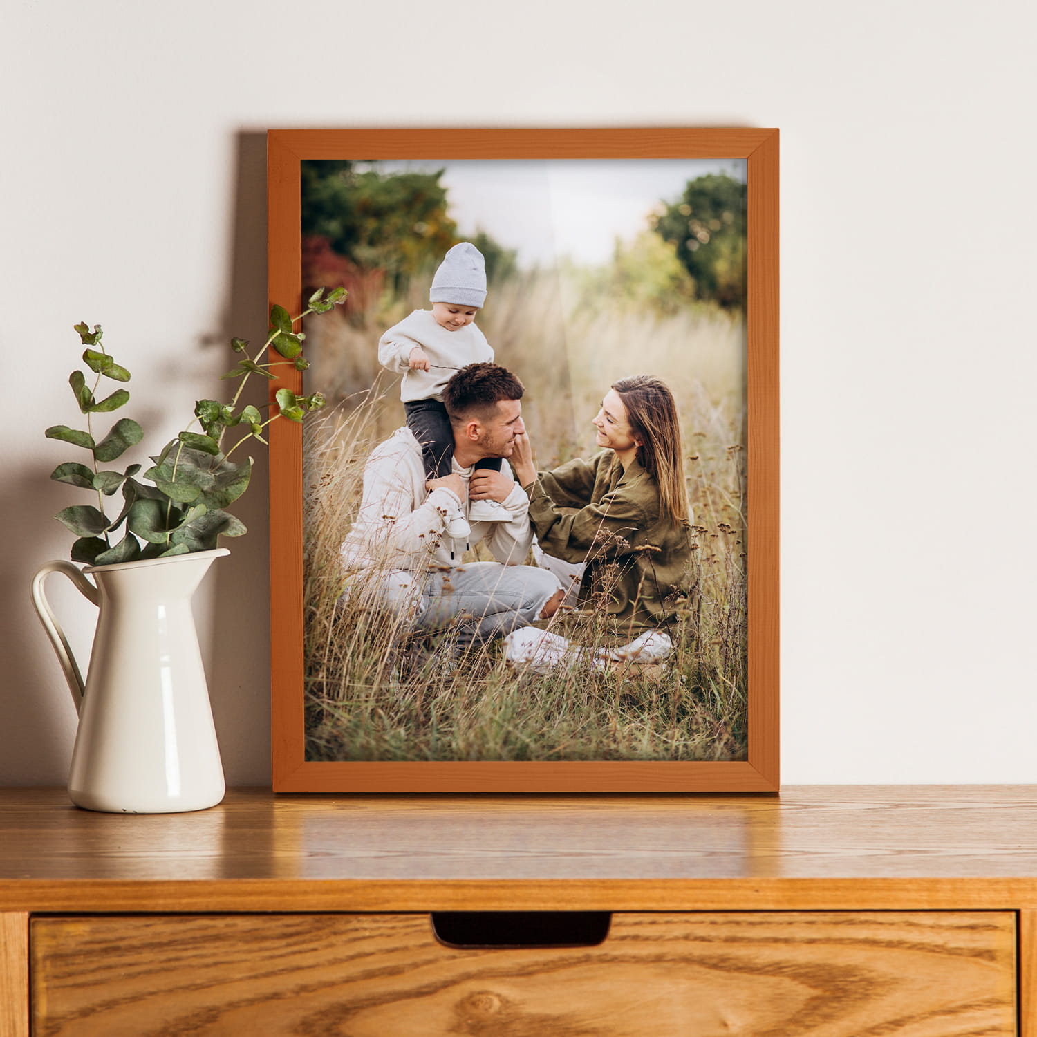 The frames are made of natural wood, carefully processed to preserve the visible structure of the material, which gives the whole a natural and timeless character. The front of the frames is made of lightweight and damage-resistant plexiglass, which is a safer alternative to traditional glass and ensures good visibility of the framed works.