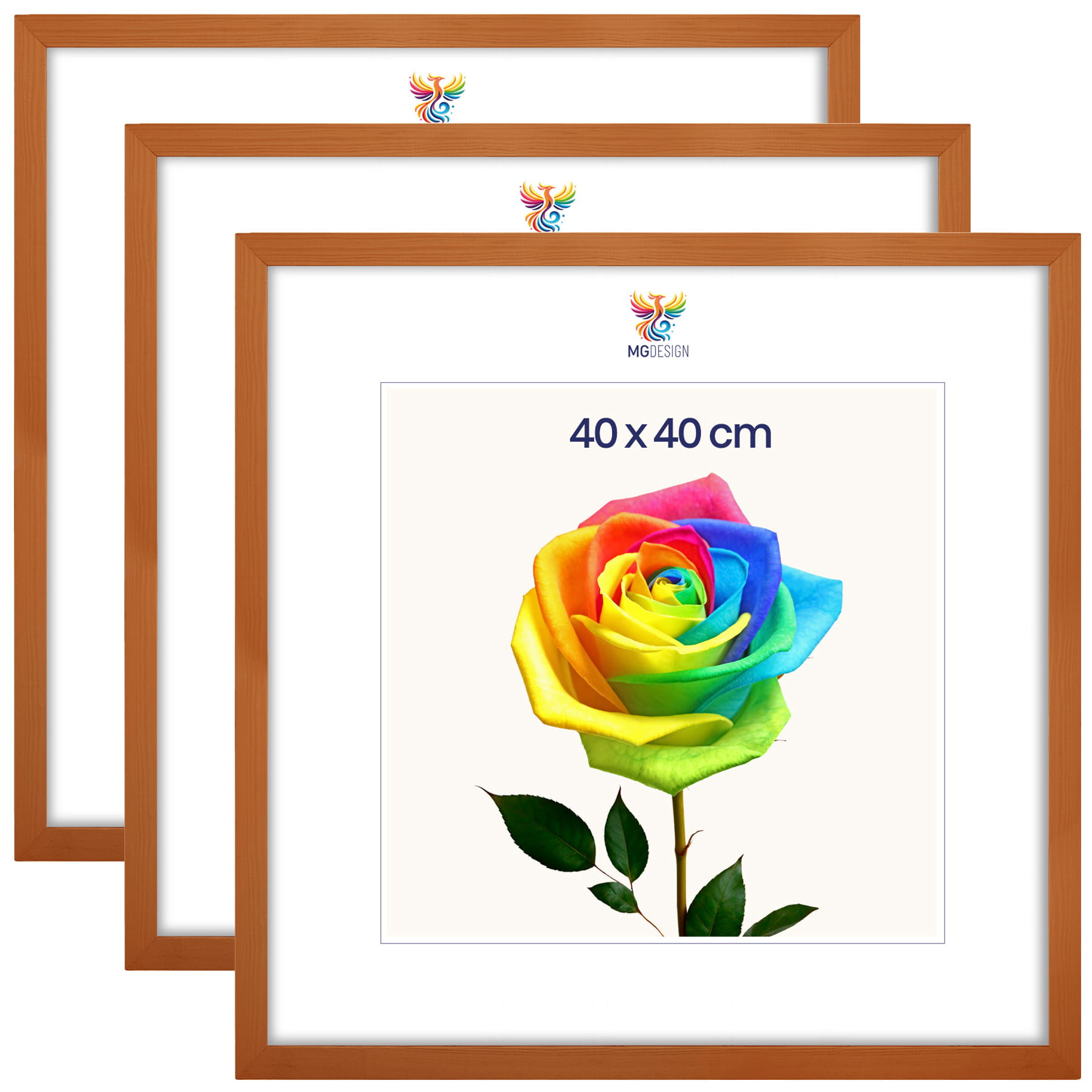 Set of 3 Varnished photo frames 16 x 16 in (40 x 40 cm), made of natural wood