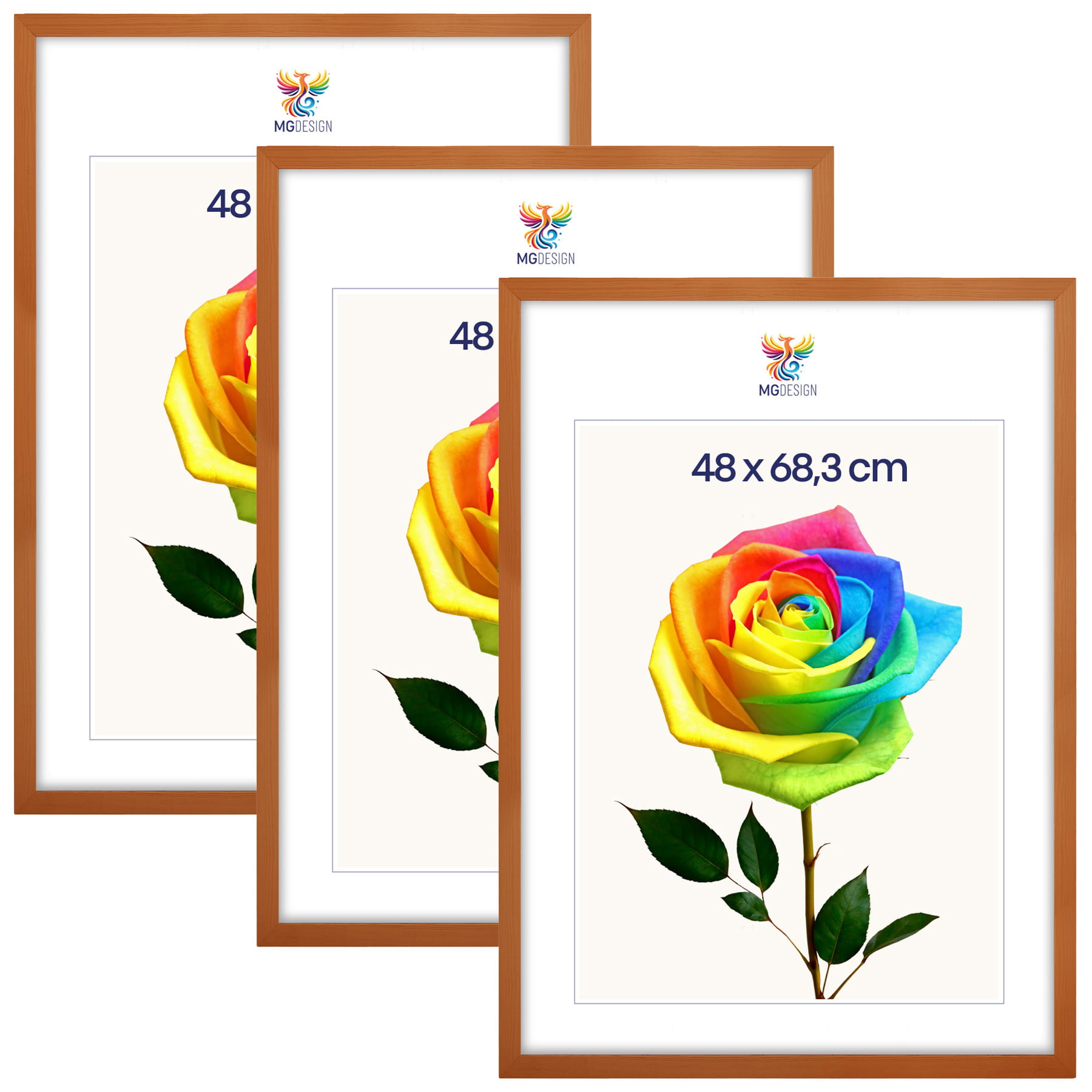 The frames are made of natural wood, carefully processed to preserve the visible structure of the material, which gives the whole a natural and timeless character. The front of the frames is made of lightweight and damage-resistant plexiglass, which is a safer alternative to traditional glass and ensures good visibility of the framed works.
