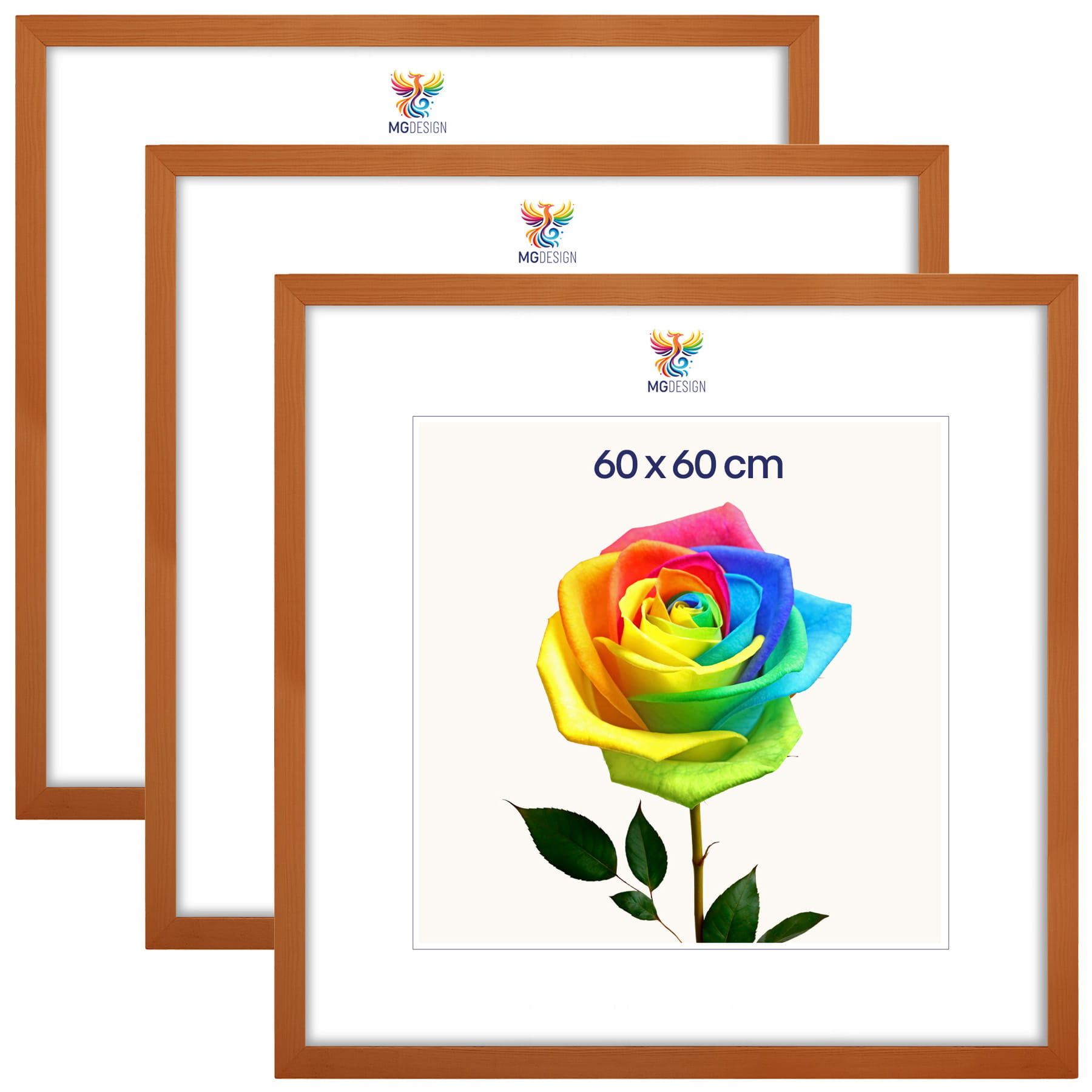 Set of 3 Varnished photo frames 24 x 24 in (60 x 60 cm), made of natural wood