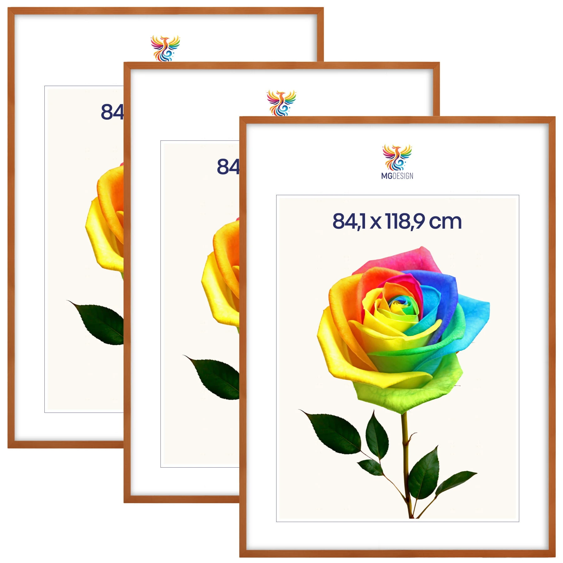 Set of 3 Varnished photo frames A0 33 x 47 in (84,1 x 118,9 cm), made of natural wood