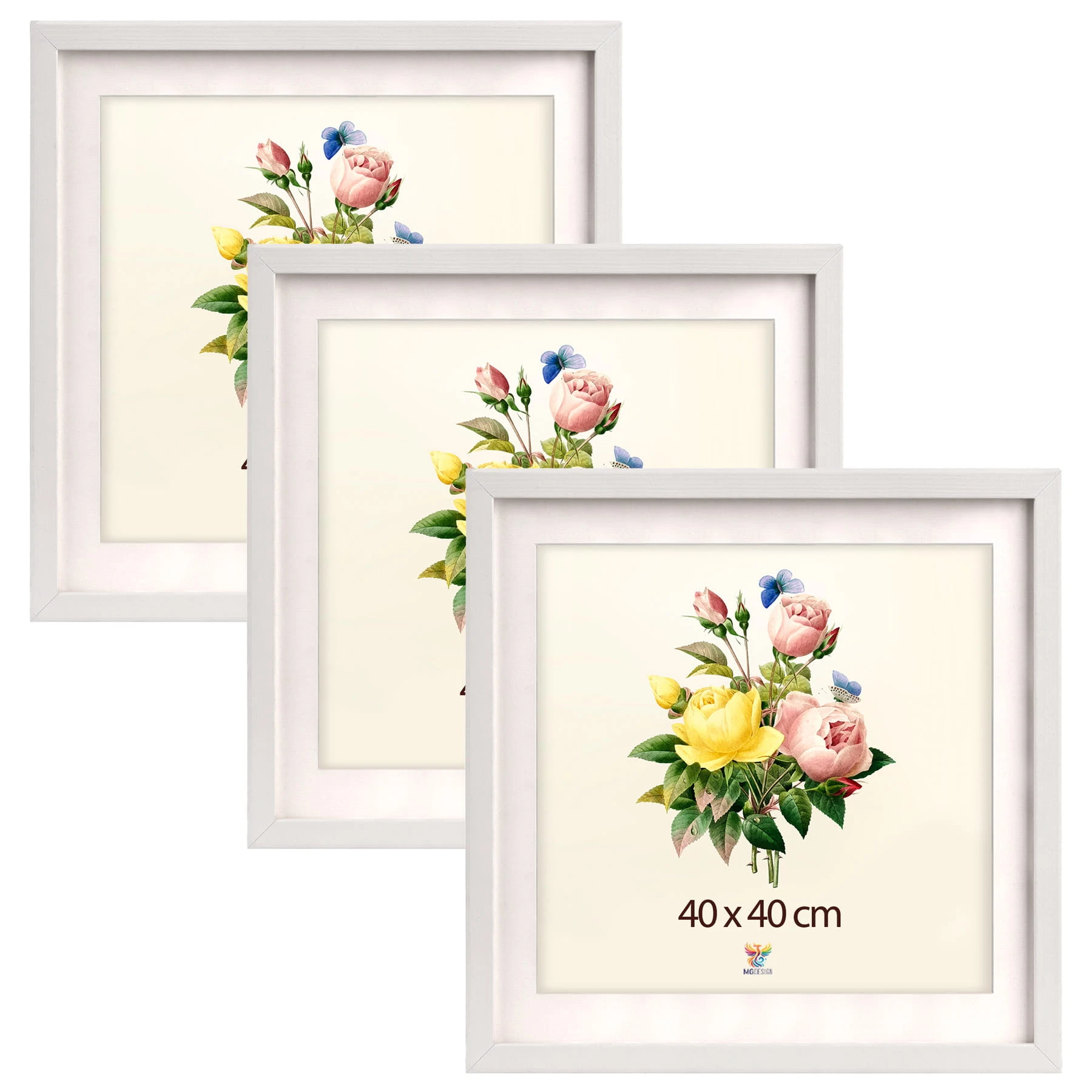 Set of 3 White deep photo frames 16 x 16 in (40 x 40 cm), made of wood