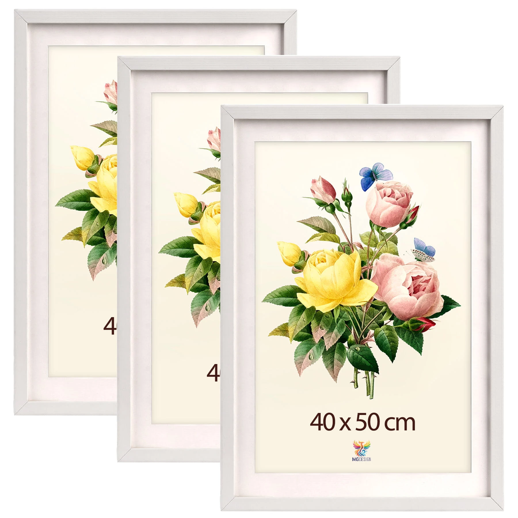 Set of 3 White deep photo frames 16 x 20 in (40 x 50 cm), made of wood