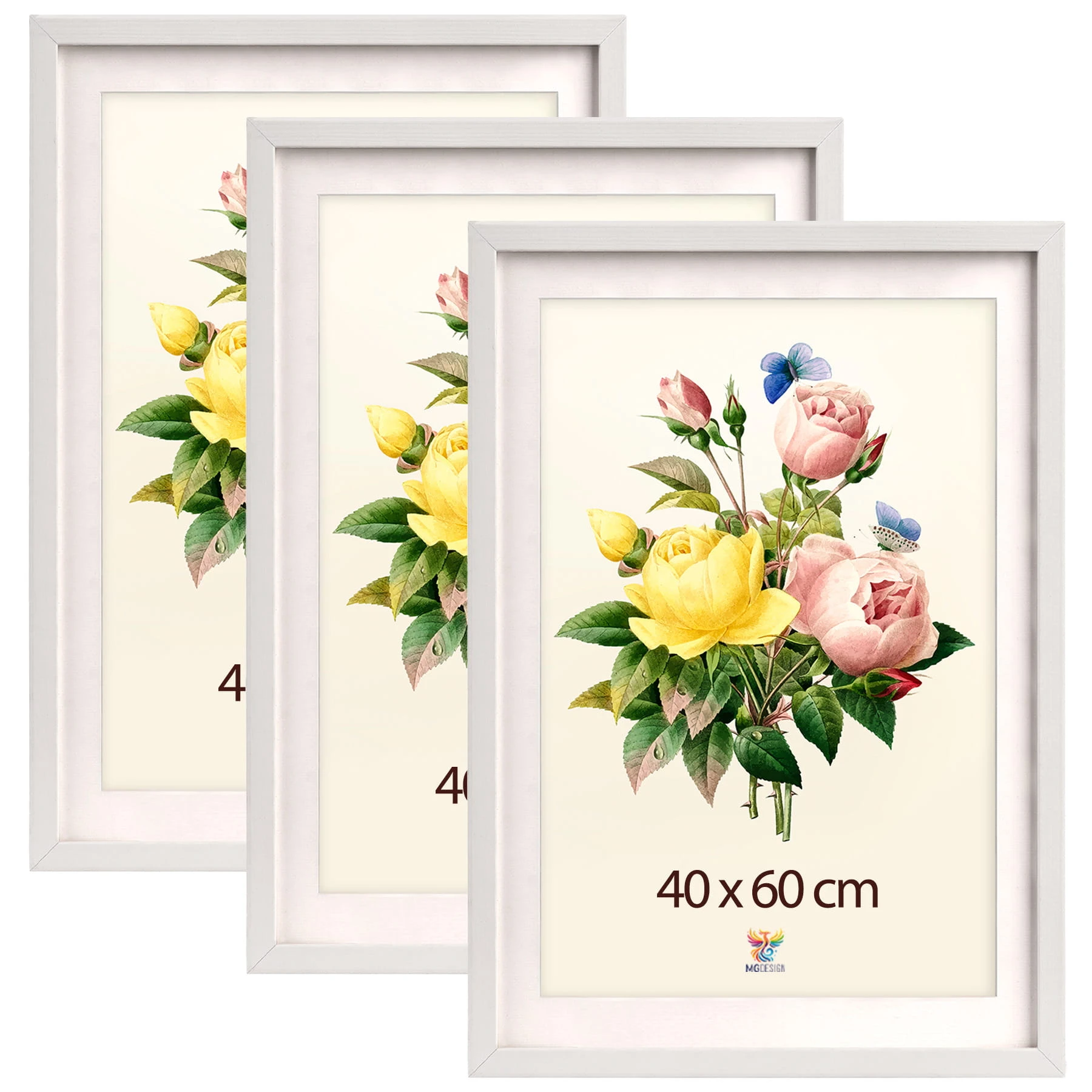 Set of 3 White deep photo frames 16 x 24 in (40 x 60 cm), made of wood