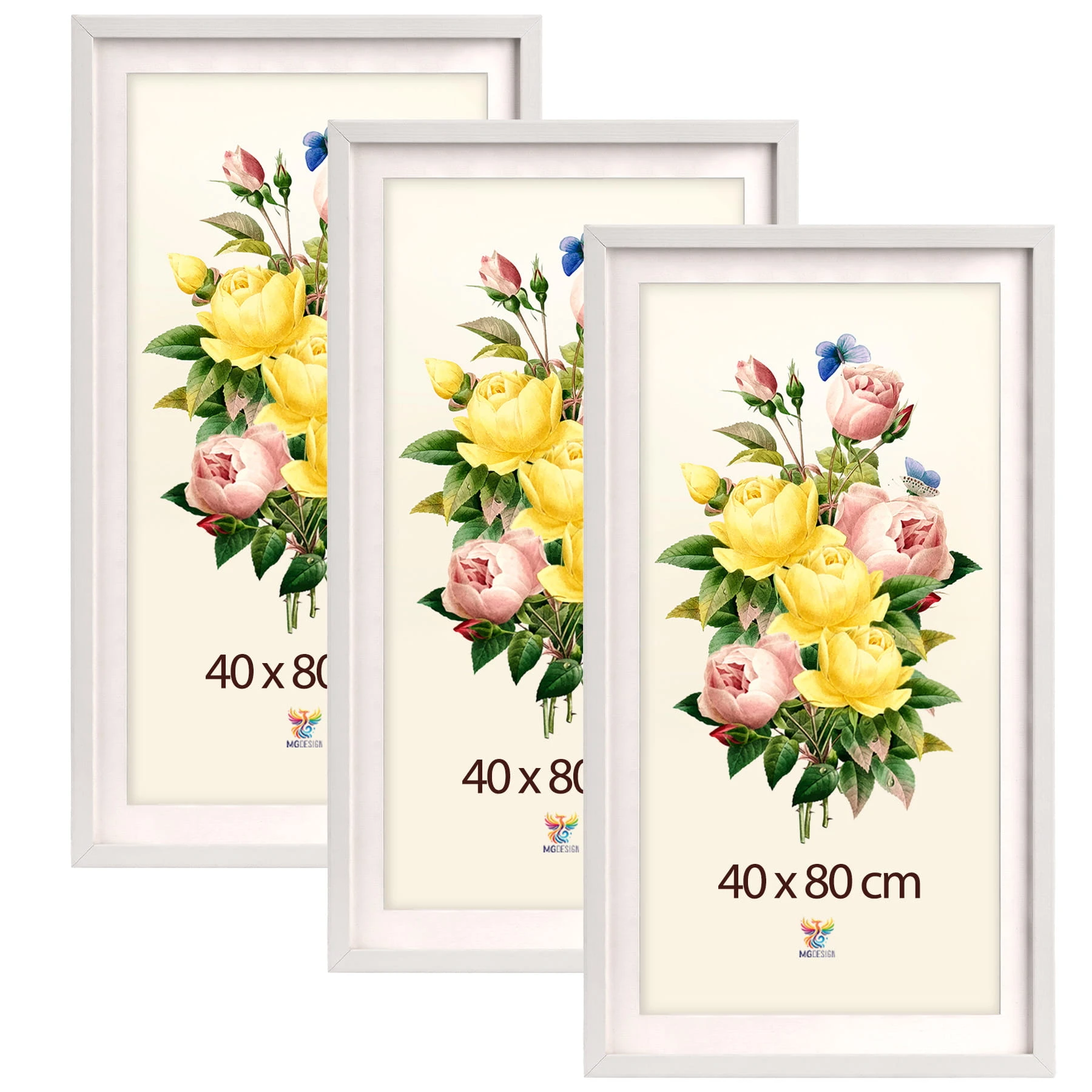Set of 3 White deep photo frames 16 x 32 in (40 x 80 cm), made of wood