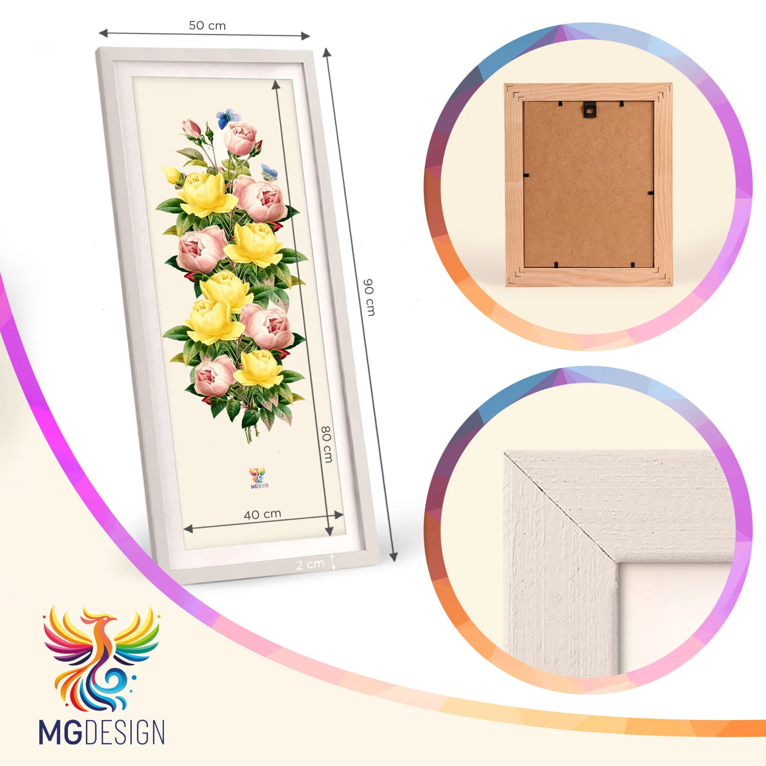 The set includes a passe-partout for each frame, creating an aesthetic gap between the graphic and the plexiglass and enhancing the visual effect of the entire composition. A stable HDF board and solid metal hangers allow for quick installation and easy replacement of the contents without the use of tools.