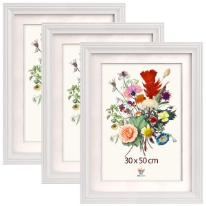 Set of 3 White milled photo frames 12 x 20 in (30 x 50 cm), made of wood