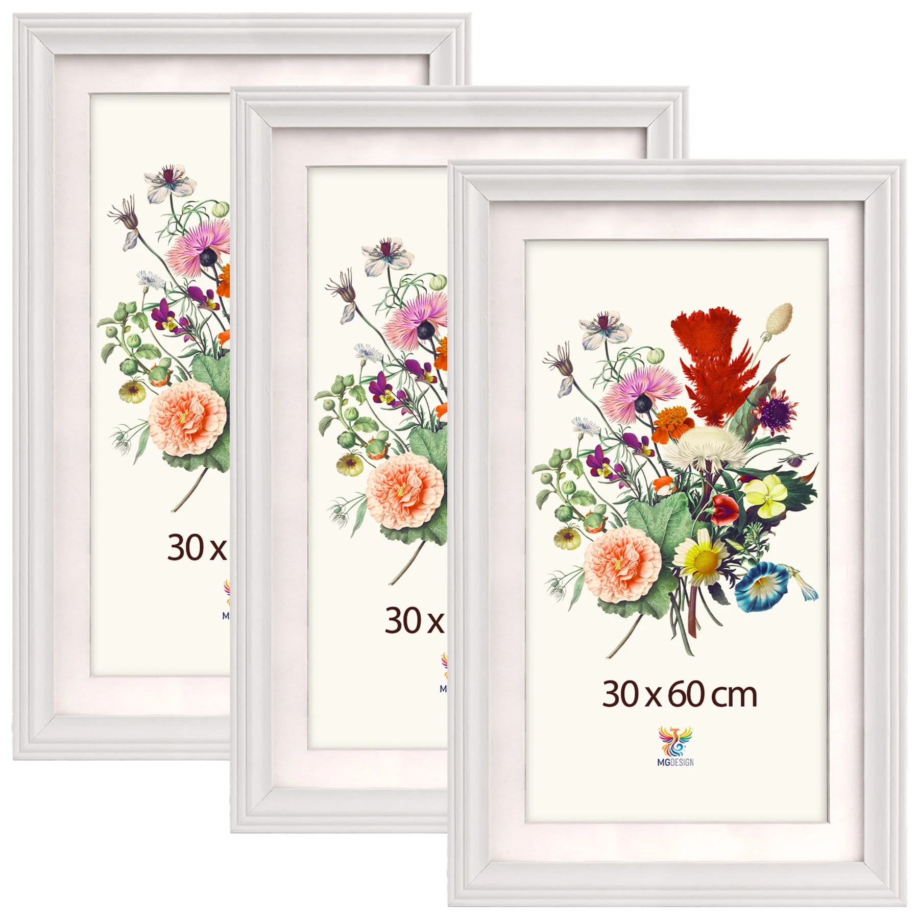 Set of 3 White milled photo frames 12 x 24 in (30 x 60 cm), made of wood