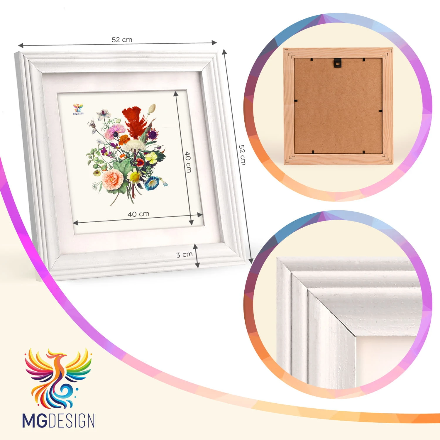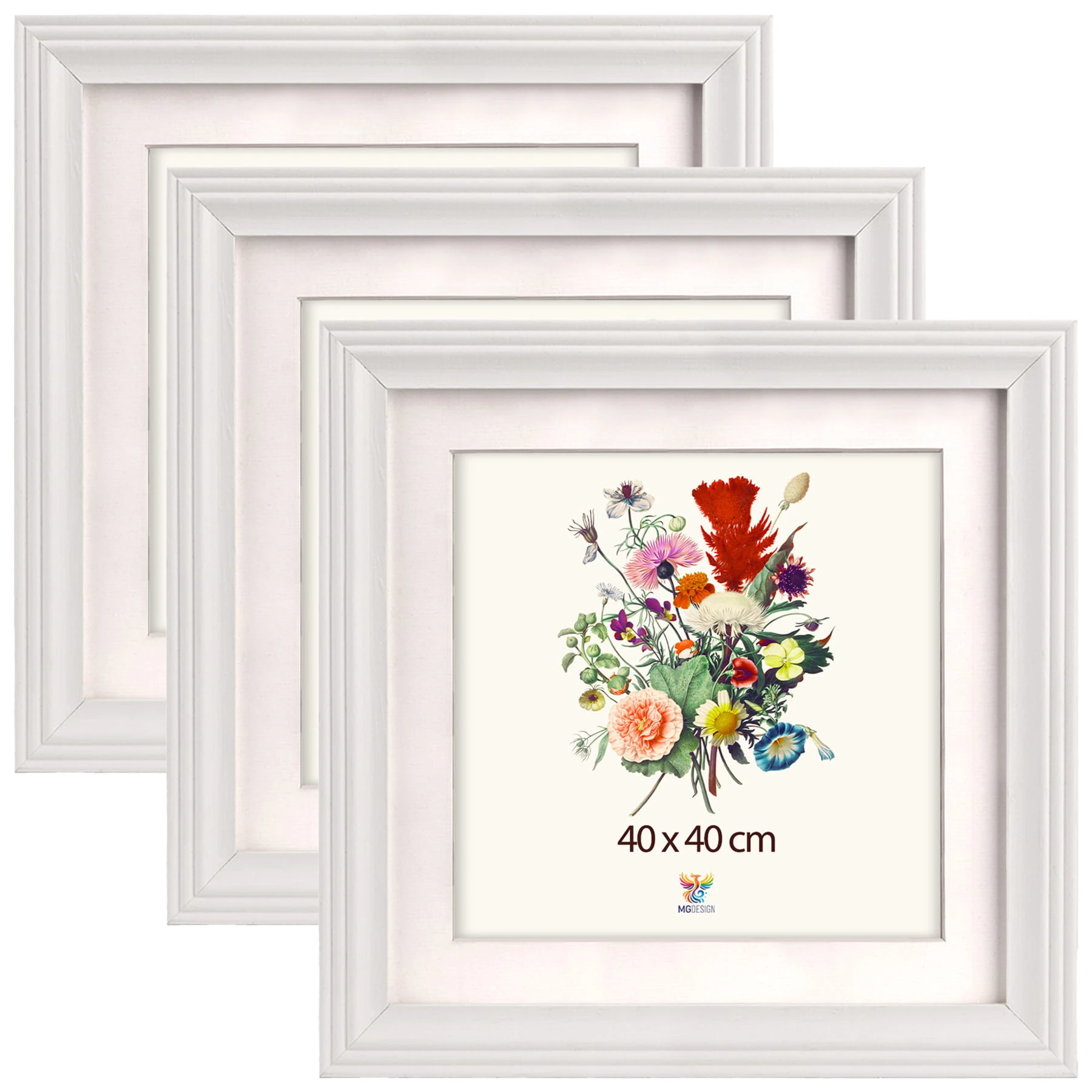 Set of 3 White milled photo frames 16 x 16 in (40 x 40 cm), made of wood