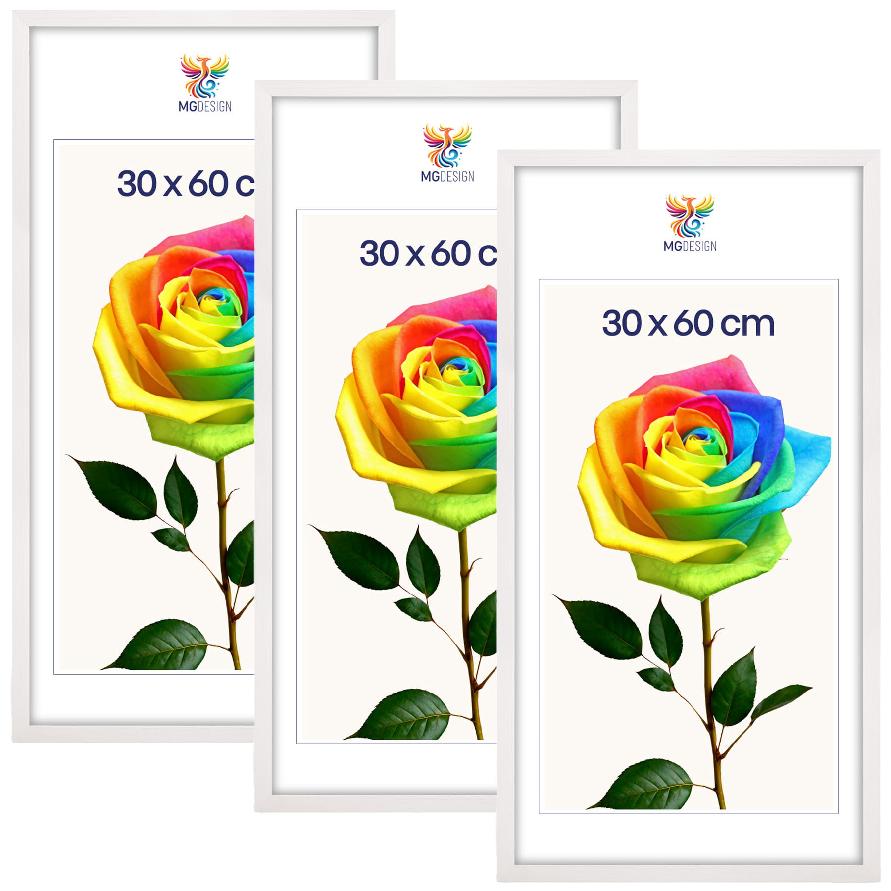 Set of 3 White photo frames 12 x 24 in (30 x 60 cm), made of natural wood