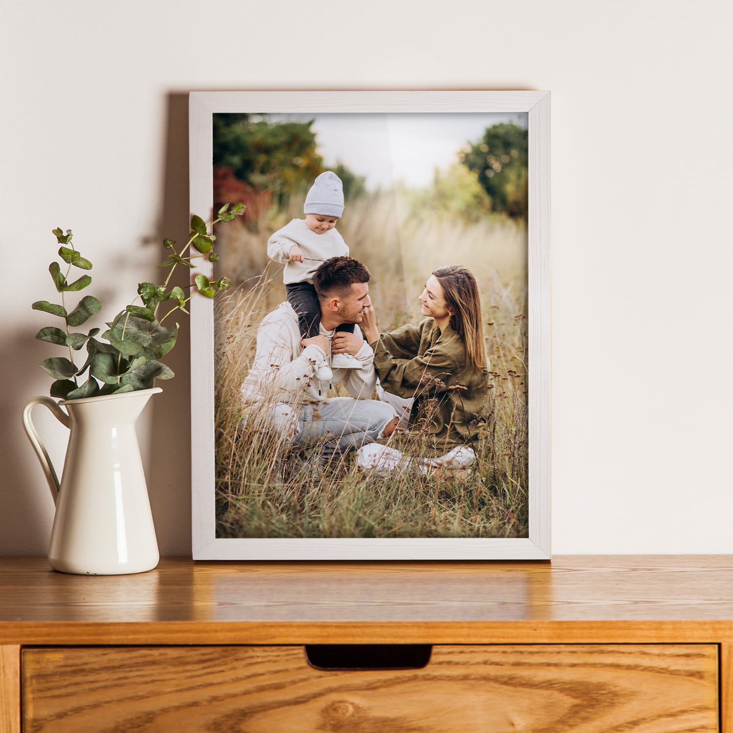 The frames are made of natural wood, carefully processed to preserve the visible structure of the material, which gives the whole a natural and timeless character. The front of the frames is made of lightweight and damage-resistant plexiglass, which is a safer alternative to traditional glass and ensures good visibility of the framed works.