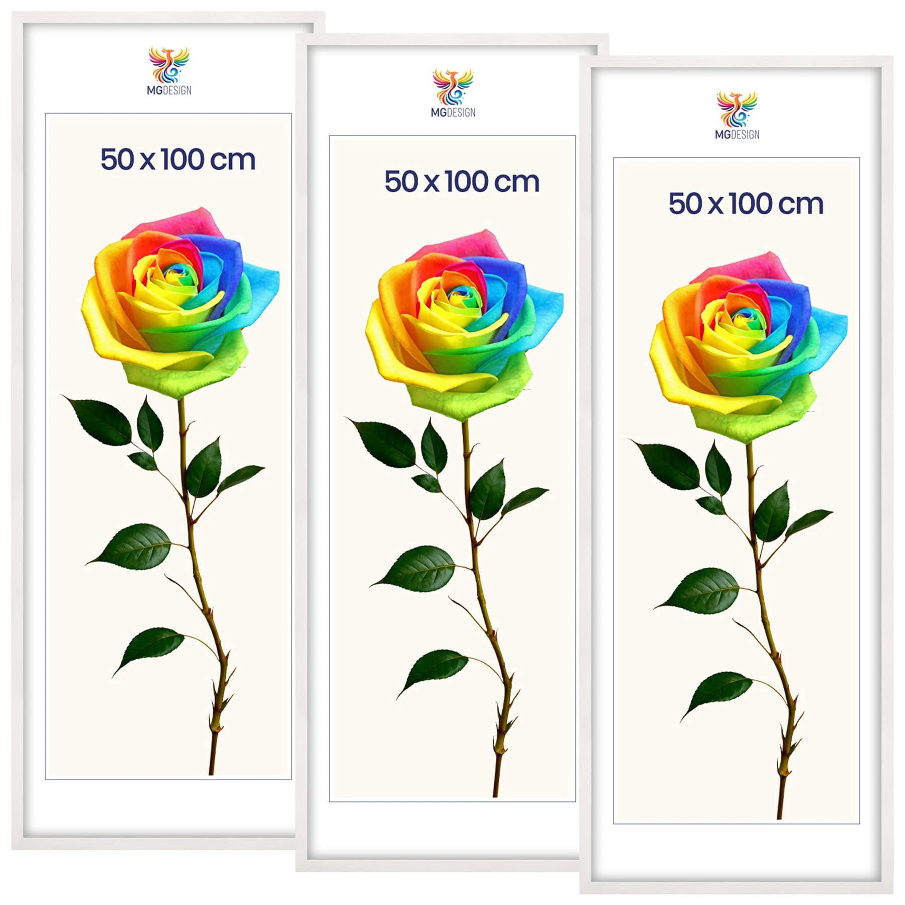 Set of 3 White photo frames 20 x 40 in (50 x 100 cm), made of natural wood