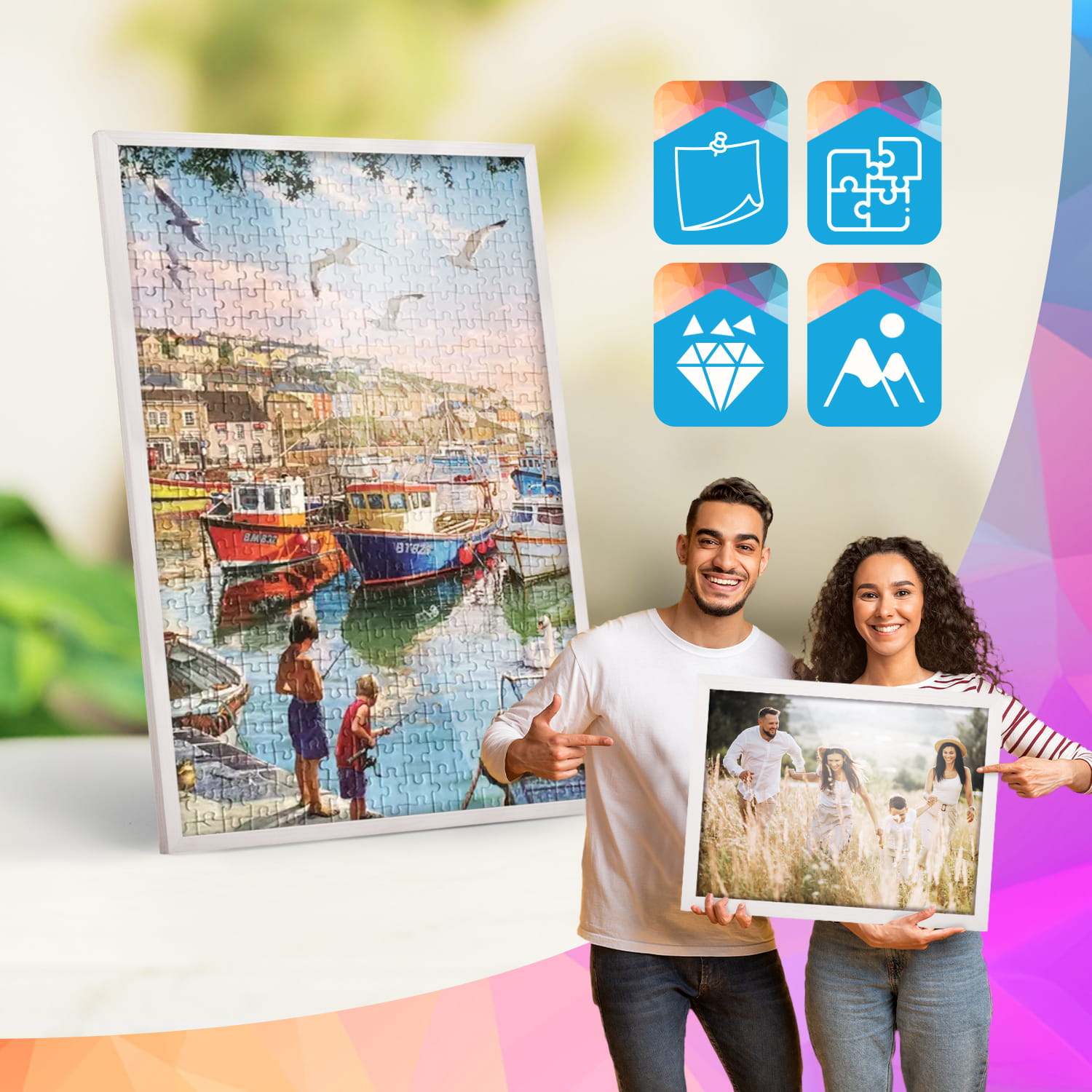 The frames are made of natural wood, carefully processed to preserve the visible structure of the material, which gives the whole a natural and timeless character. The front of the frames is made of lightweight and damage-resistant plexiglass, which is a safer alternative to traditional glass and ensures good visibility of the framed works.