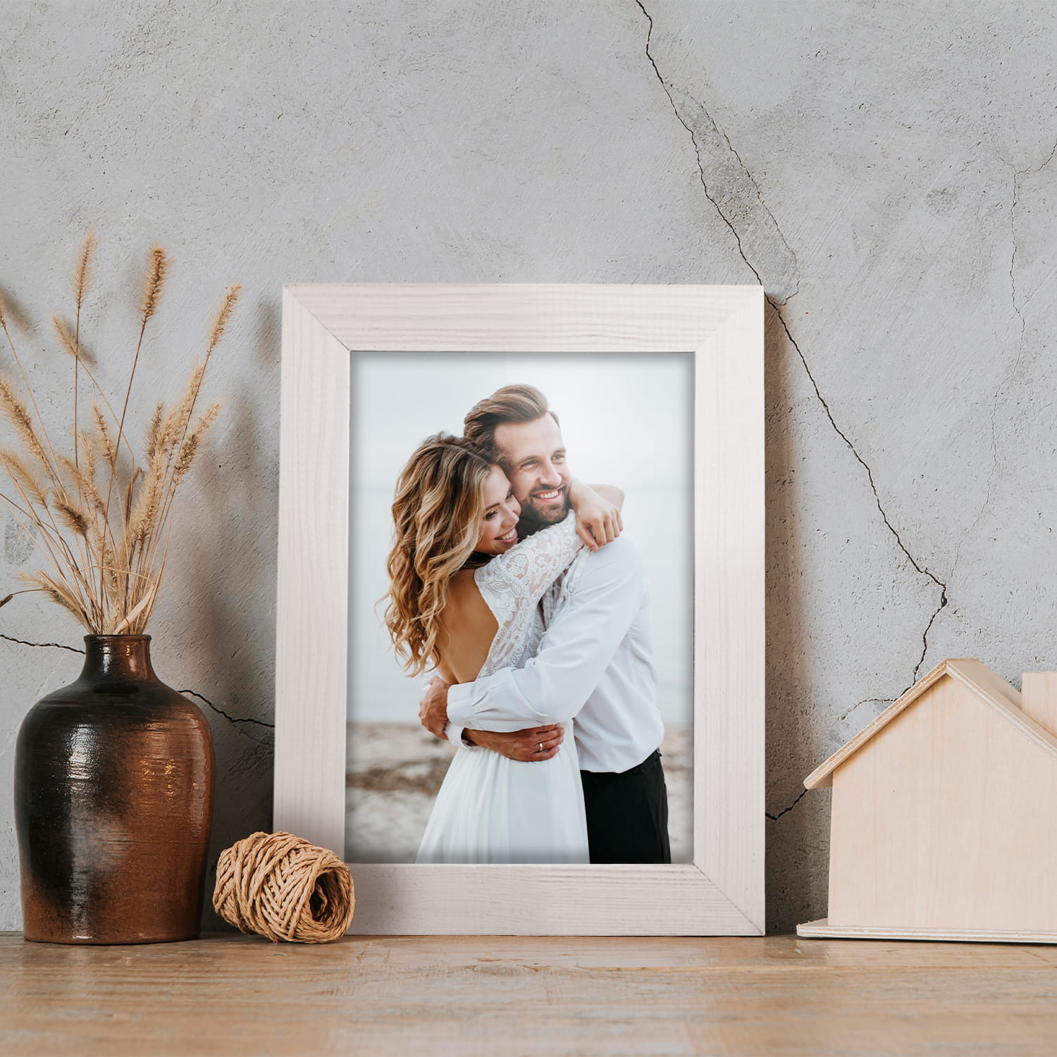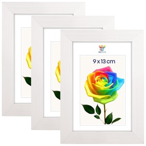 Set of 3 White photo frames 4 x 5 in (9 x 13 cm), made of natural wood