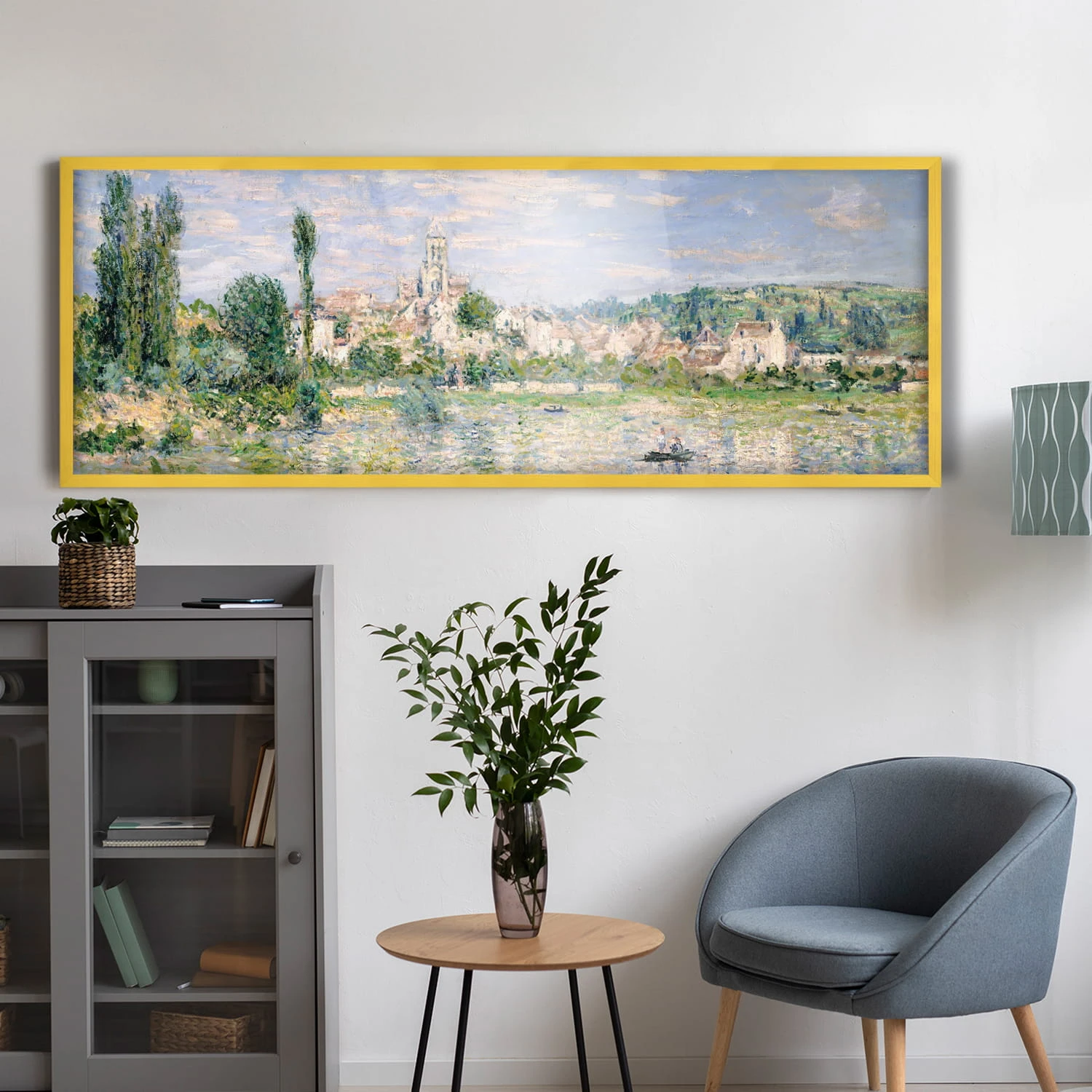 Set of 3 Yellow photo frames 20 x 55 in (50 x 140 cm), made of natural wood