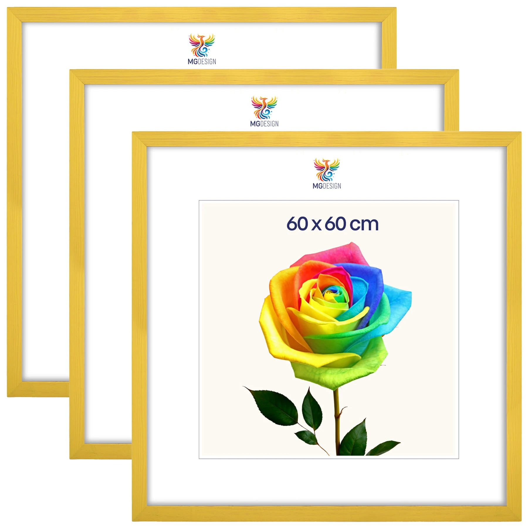 Set of 3 Yellow photo frames 24 x 24 in (60 x 60 cm), made of natural wood