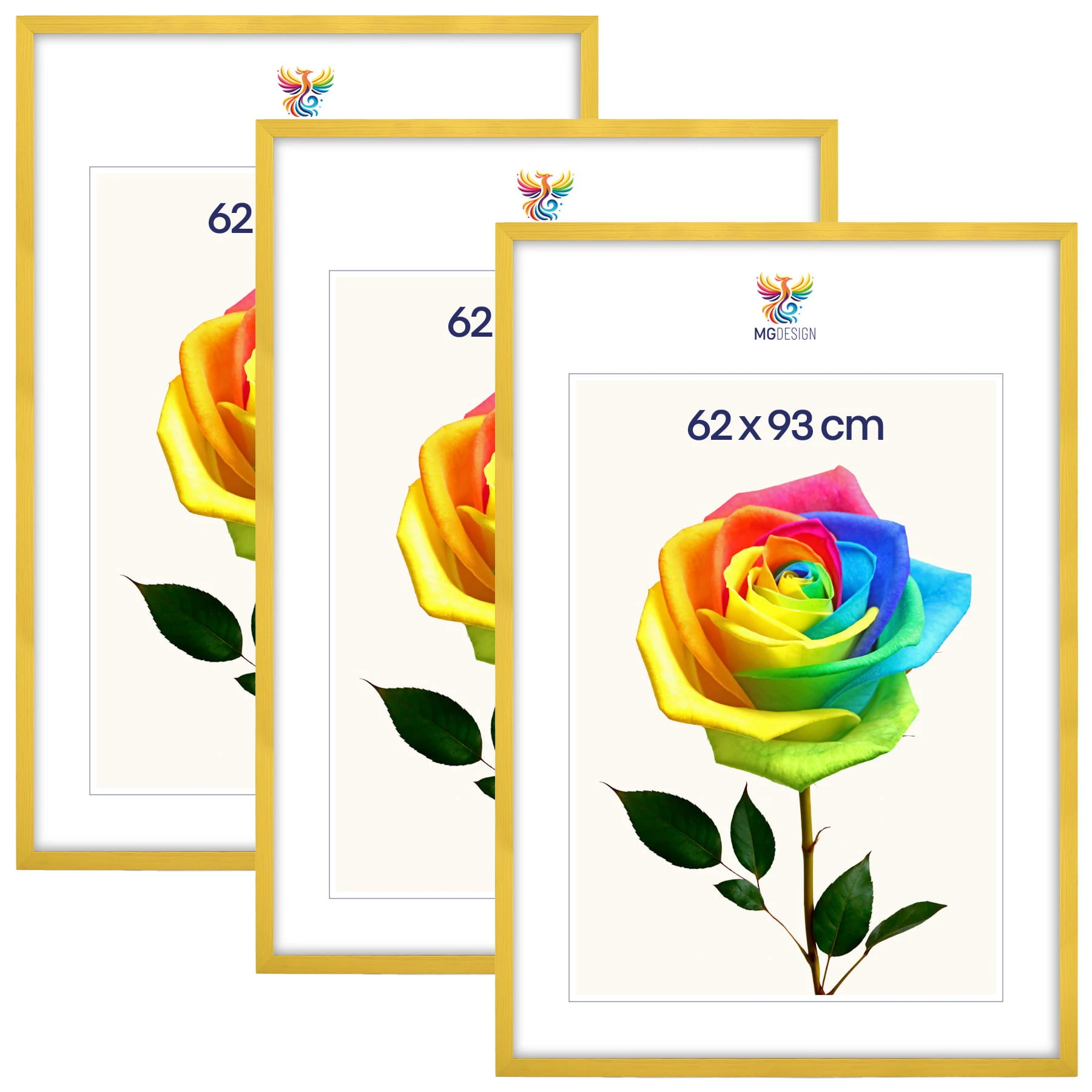 Set of 3 Yellow photo frames 24 x 36 in (62 x 93 cm), made of natural wood
