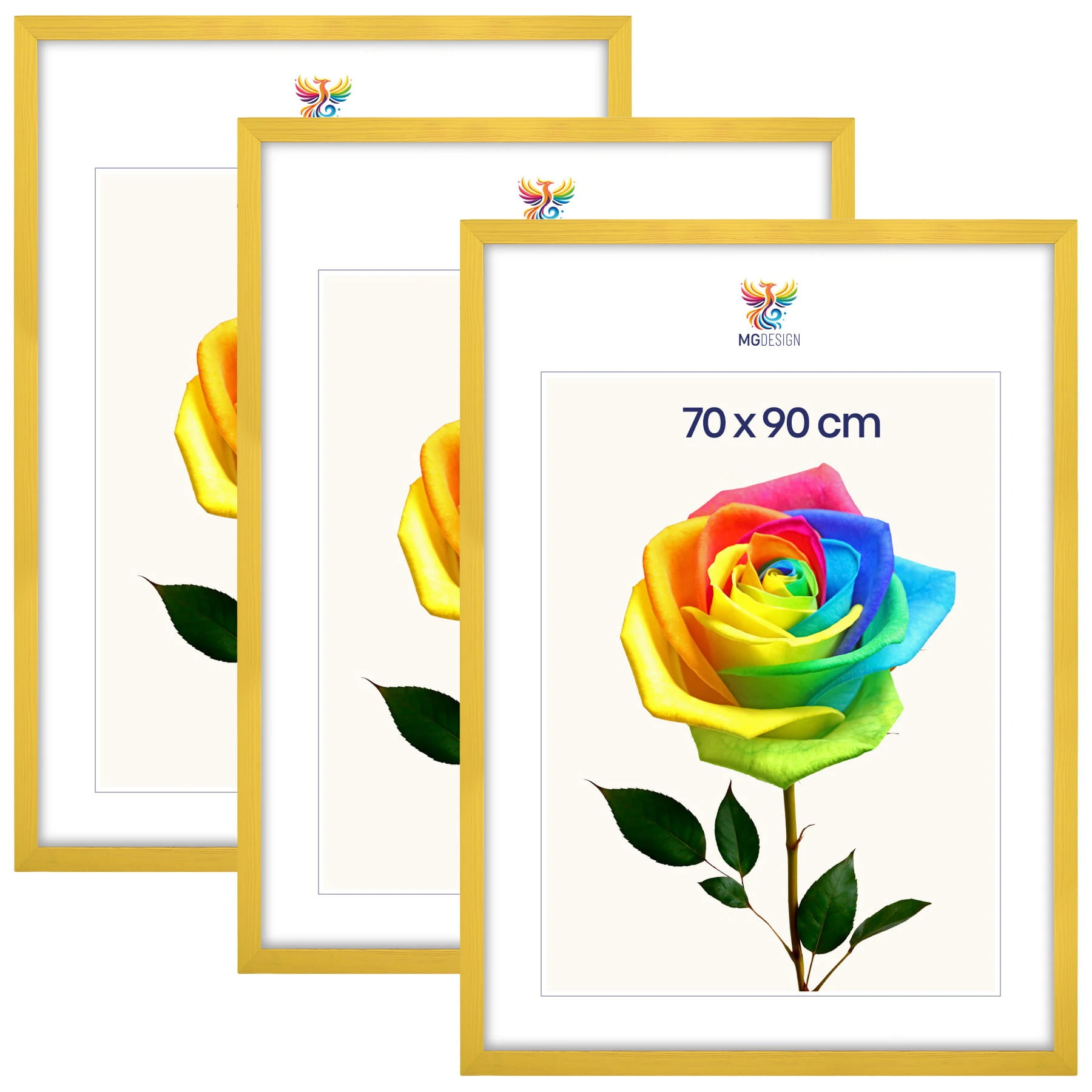 Set of 3 Yellow photo frames 28 x 36 in (70 x 90 cm), made of natural wood