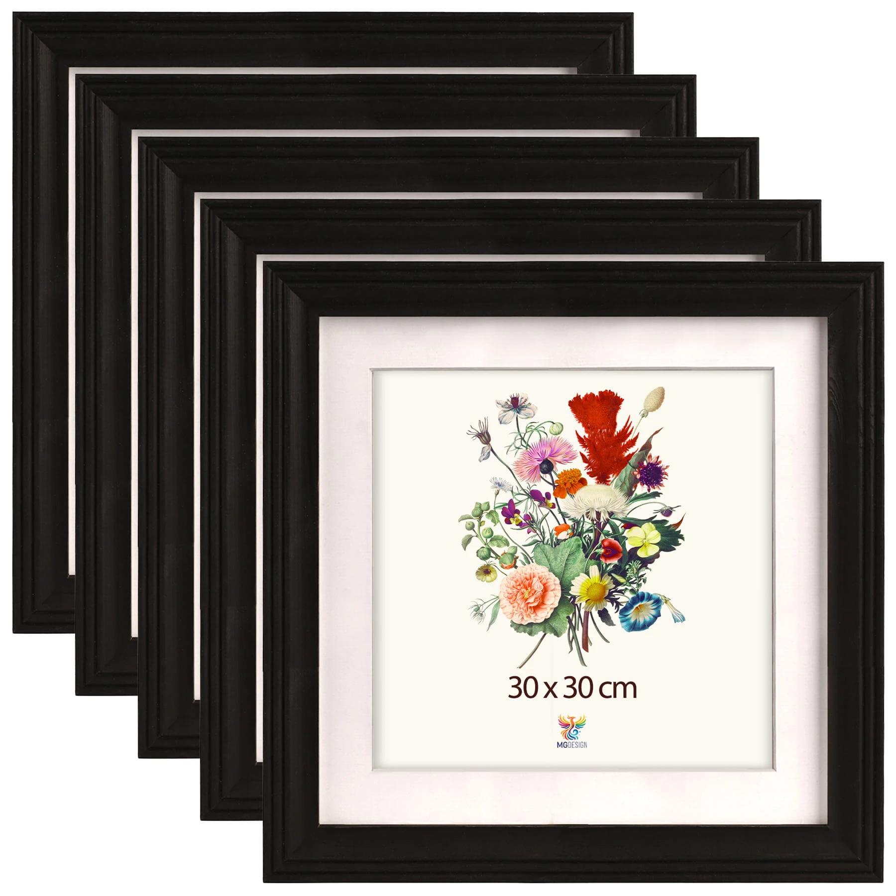 Set of 5 Black milled photo frames 12 x 12 in (30 x 30 cm), made of wood