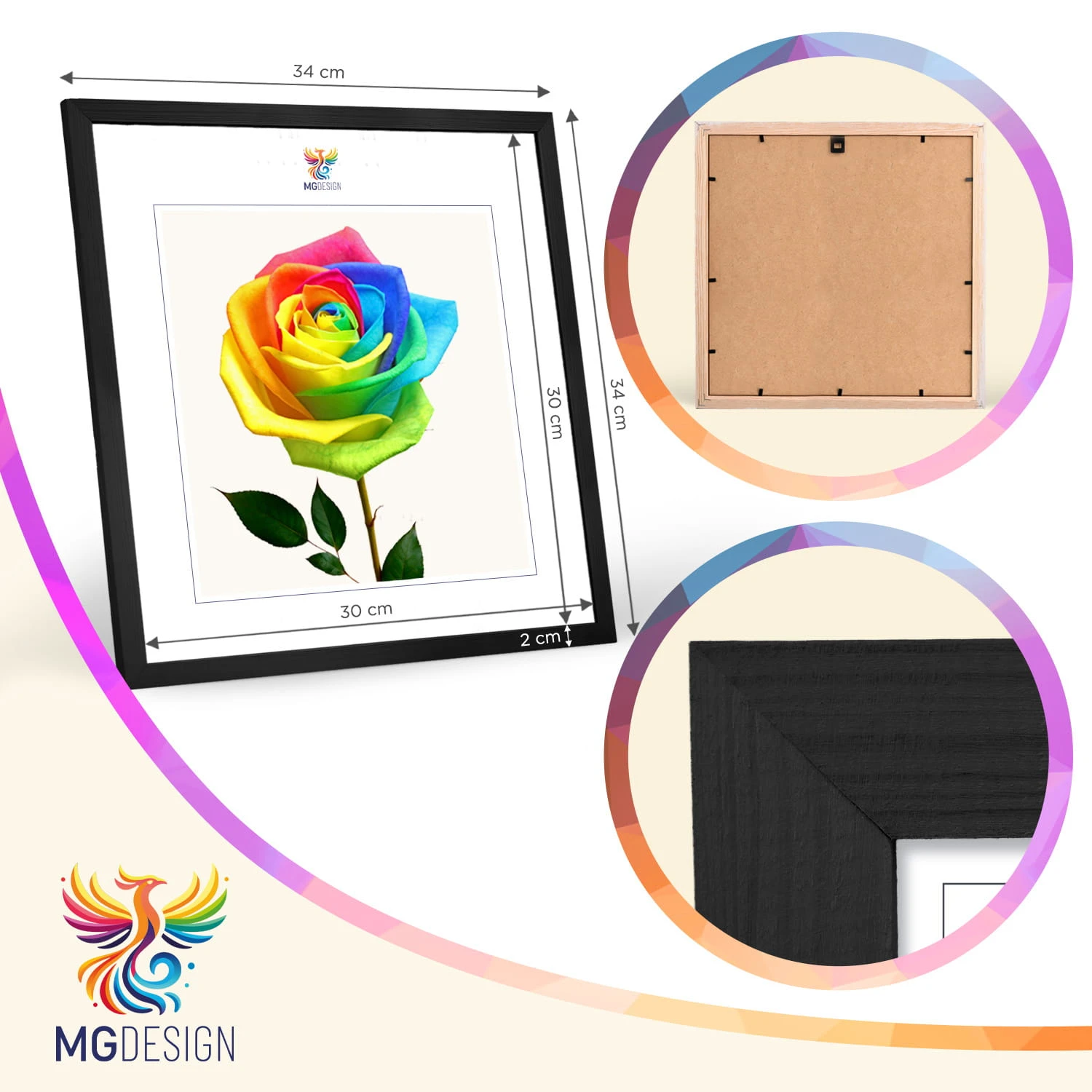 Set of 5 Black photo frames 12 x 12 in (30 x 30 cm), made of natural wood