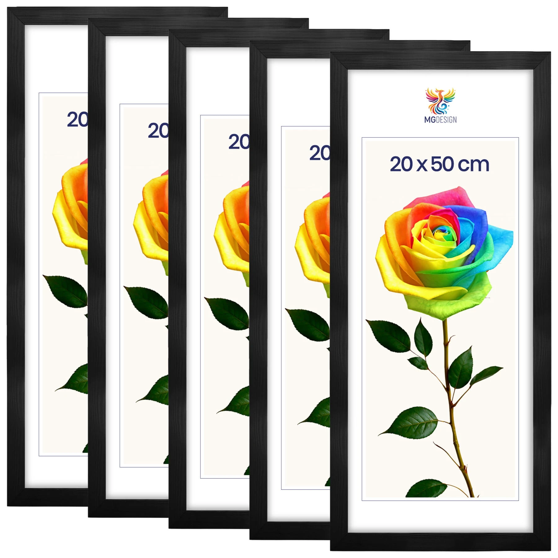 Set of 5 Black photo frames 8 x 20 in (20 x 50 cm), made of natural wood