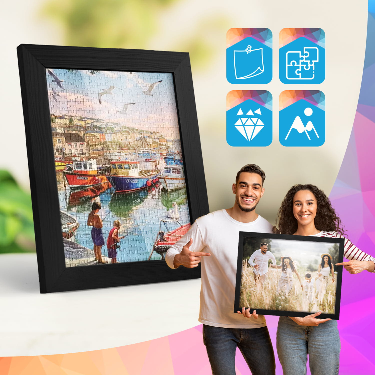Set of 5 Black photo frames A6 4 x 6 in (10 x 15 cm), made of natural wood