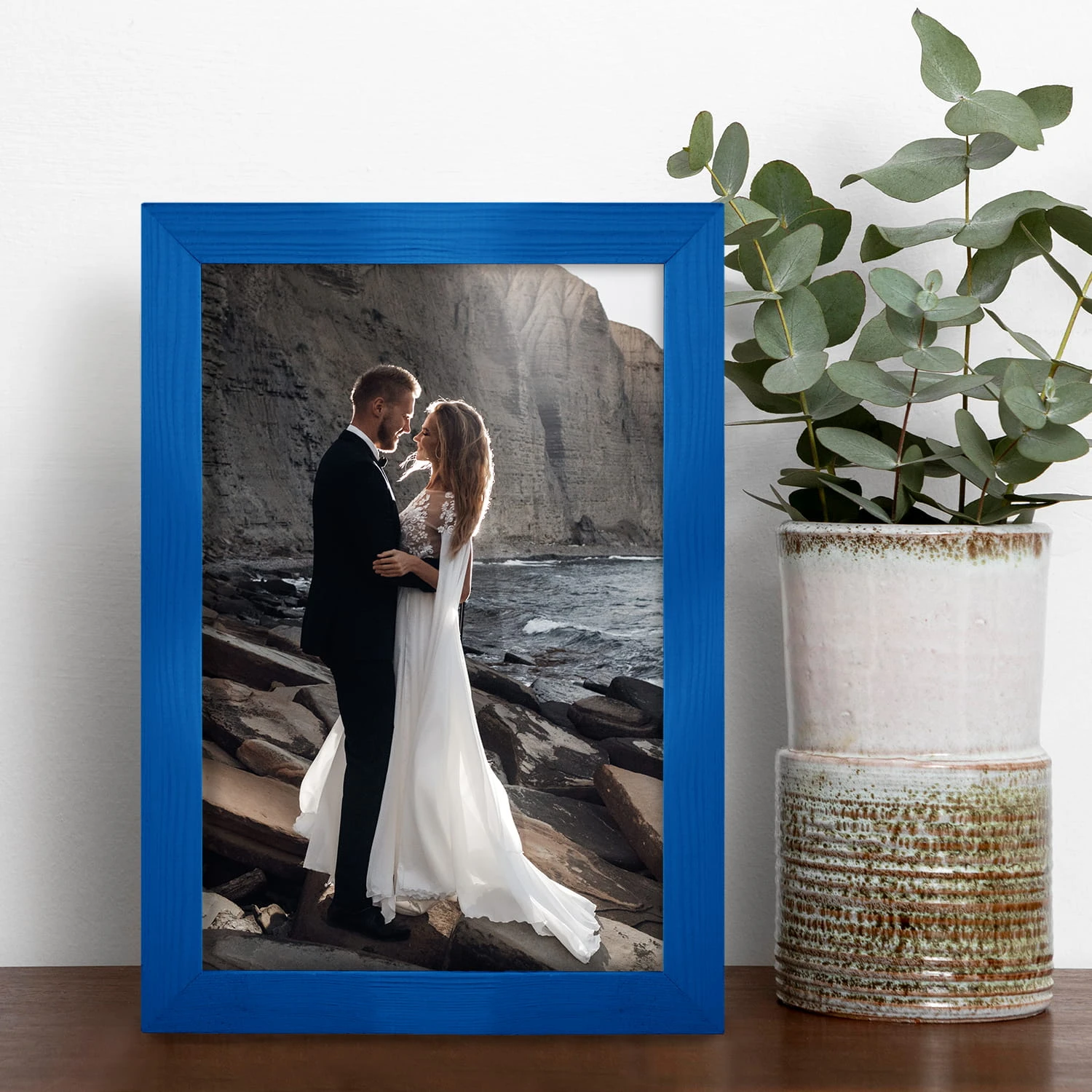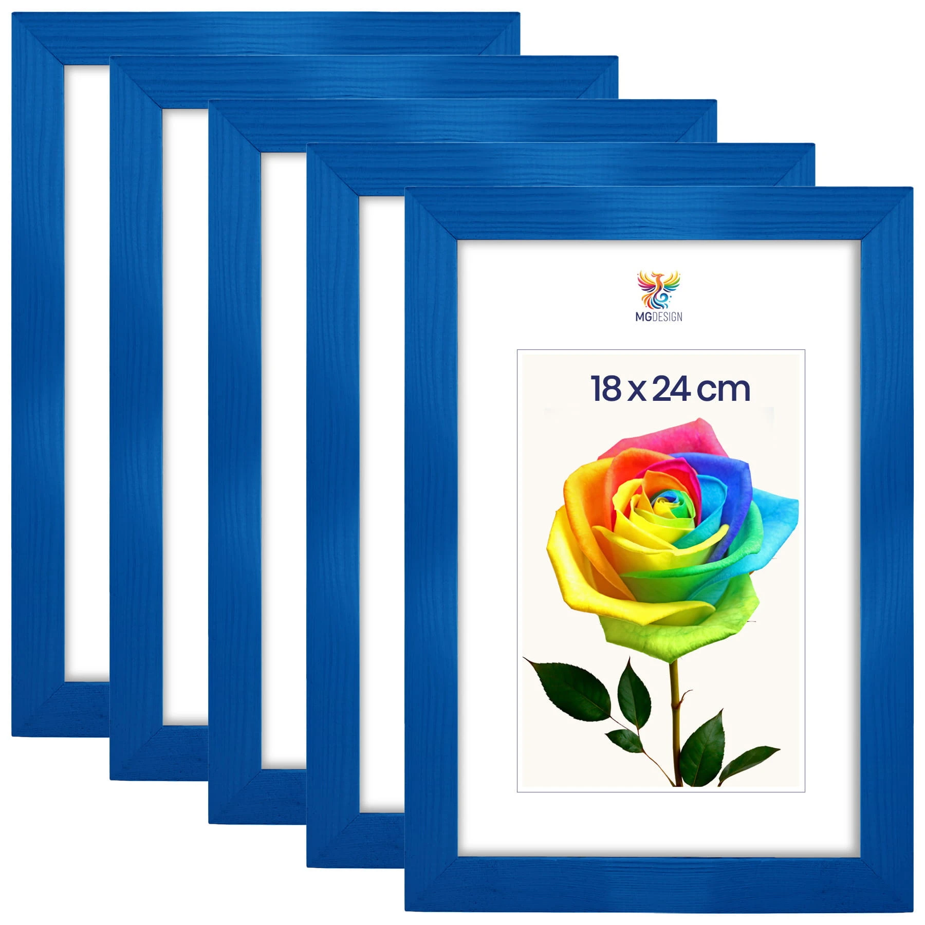 Set of 5 Blue photo frames 7 x 9 in (18 x 24 cm), made of natural wood