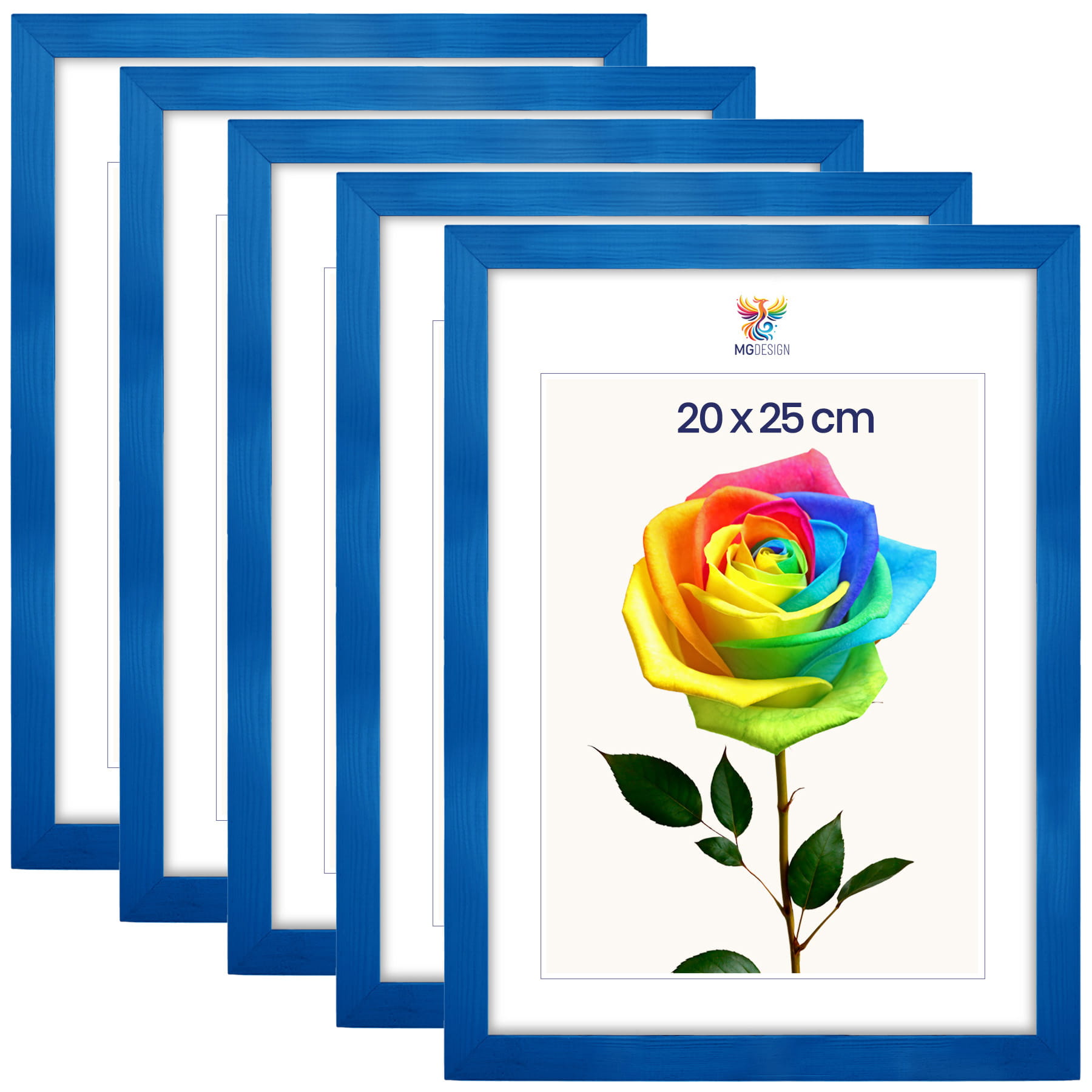Set of 5 Blue photo frames 8 x 10 in (20 x 25 cm), made of natural wood
