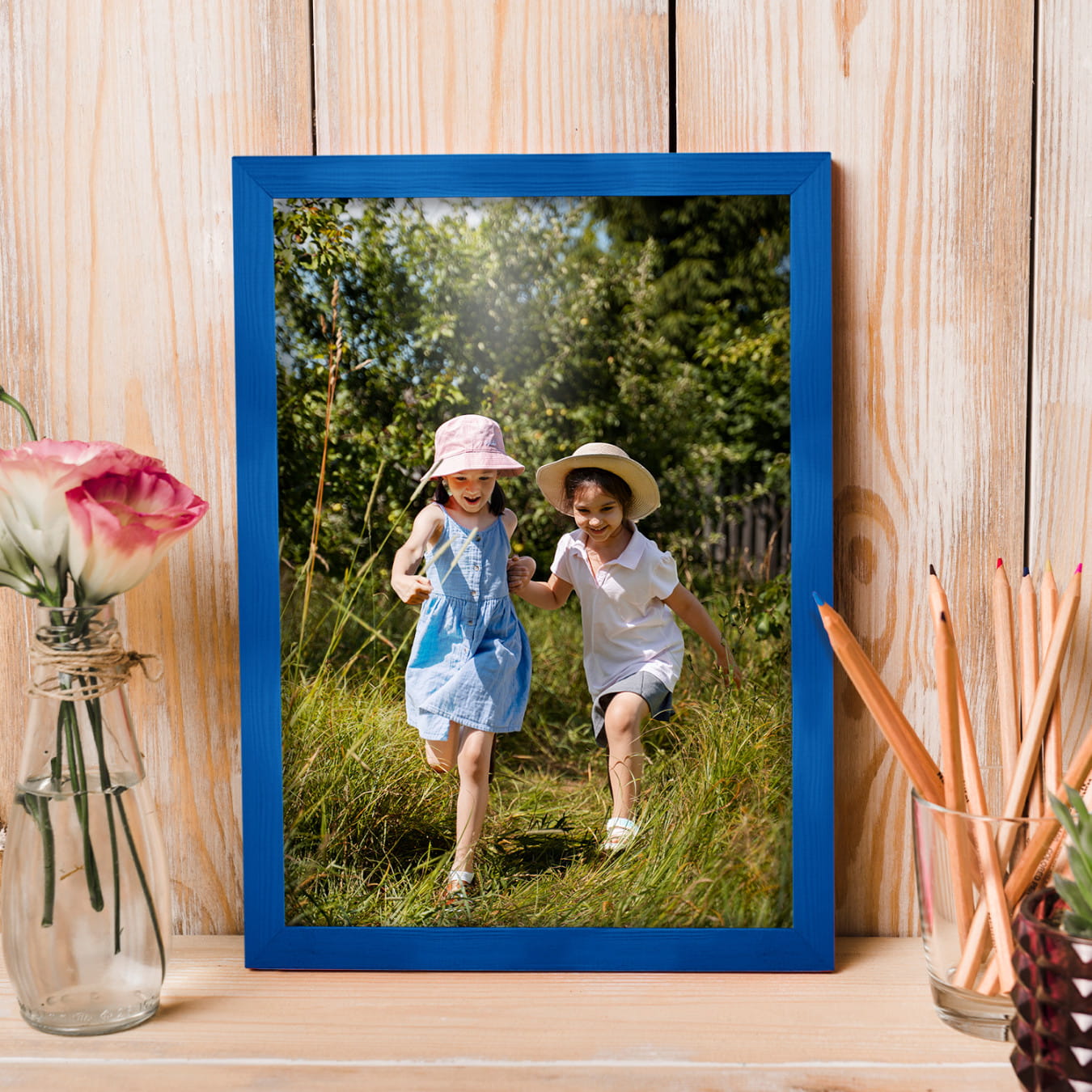 The frames are made of natural wood, carefully processed to preserve the visible structure of the material, which gives the whole a natural and timeless character. The front of the frames is made of lightweight and damage-resistant plexiglass, which is a safer alternative to traditional glass and ensures good visibility of the framed works.